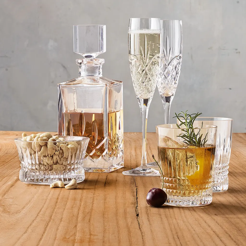 Celebrating 60 years of Waterford Crystals celebrated Lismore design, this anniversary collection features exquisite horizontal and vertical cuts and diamond-like facets that radiate brilliantly.