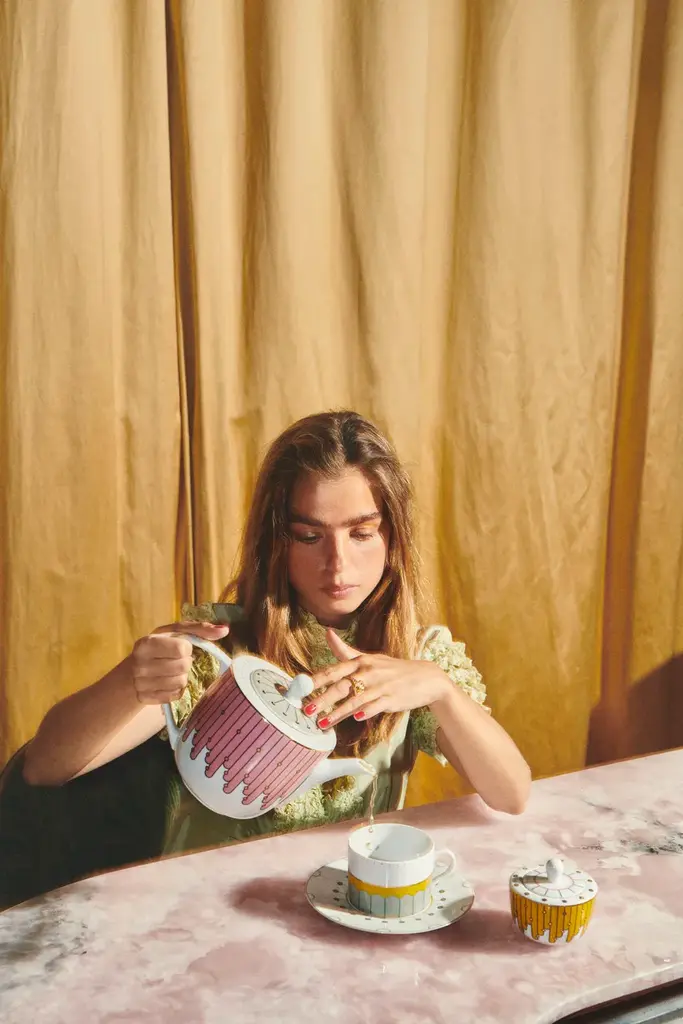 Little Diamond is a porcelain sugar bowl.Made of immaculate porcelain, the Little Diamond sugar bowl seems to contain a treasure inside. The bowl combines shades of matte yellow and gold, while the perfectly designed lid is decorated with hand-drawn lines and dots. She embraces the luxury of sprinkling sweetness with the Little Diamond sugar bowl, where every ball of sugar becomes a precious delight.Material: PorcelainColours: Yellow/Gold/Rose/Marine