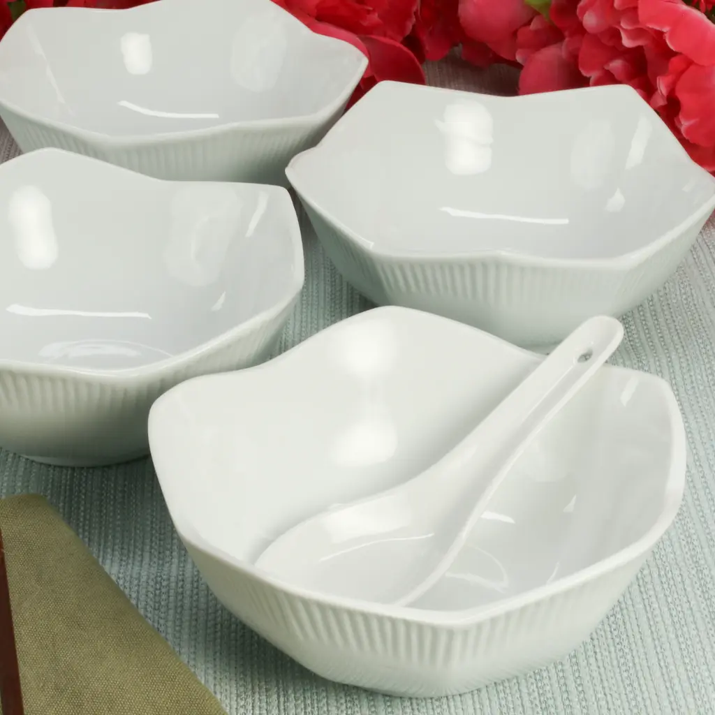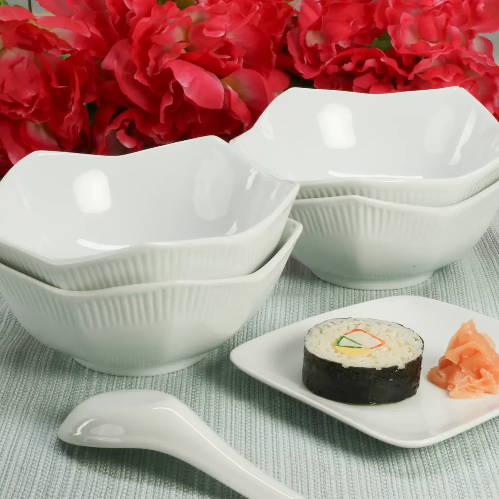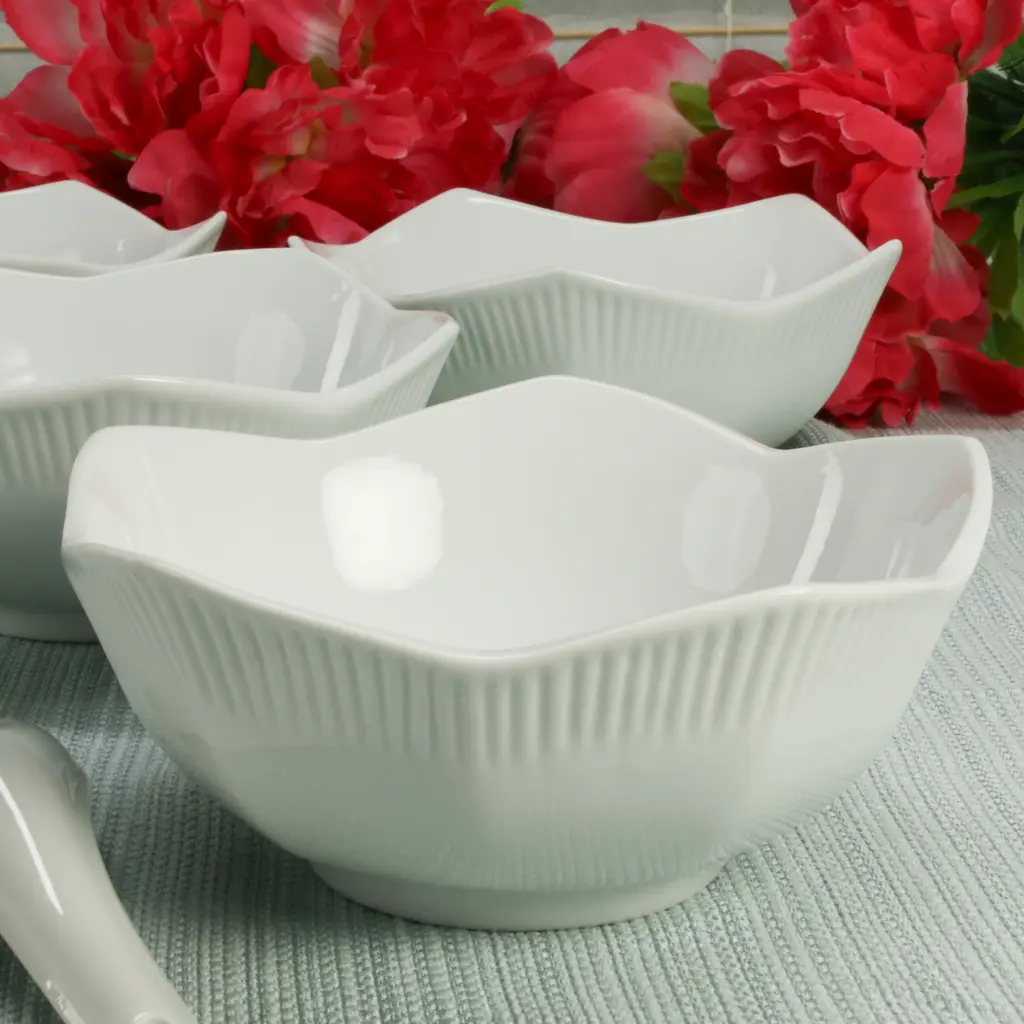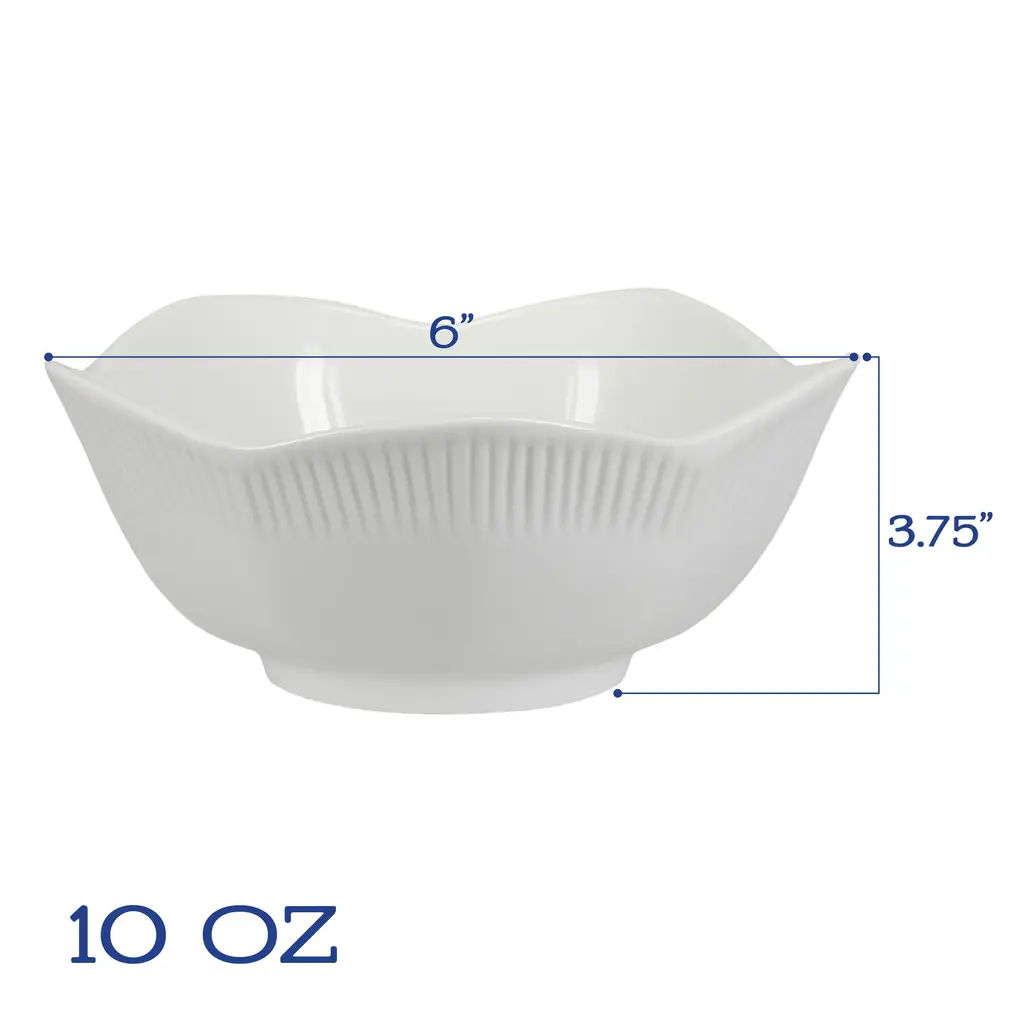Elevate your dining experience with the BIA Cordon Bleu Porcelain Lotus Bowls. This set of 4-10 oz. bowls, each measuring 6" in diameter adds flair to any table setting. Crafted from white porcelain, these bowls are as beautiful as they are sturdy, perfect for serving nuts, candy, dips, sauces, fruit, and more. Whether you're hosting a formal dinner or a casual gathering, these versatile bowls can be dressed up or down effortlessly. Dishwasher and microwave safe, they are add a touch of elegance to your dining collection with the BIA Cordon Bleu Lotus Bowls. BIA Cordon Bleu: Designed With Modern Sensibility For Wherever You Live, However You Cook, And Whenever You Entertain.