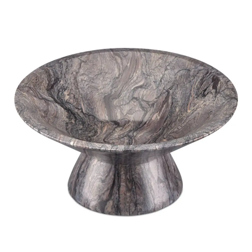 The Lubo Breccia Bowl is crafted from Breccia marble, known for its swirling personality as haunting as the milky way at night. This black footed bowl is a versatile addition to any interior, equally suitable for holding decorative objects in a main living space or displaying fruit on a kitchen island. Each piece features unique surface variations, adding to its distinct charm.