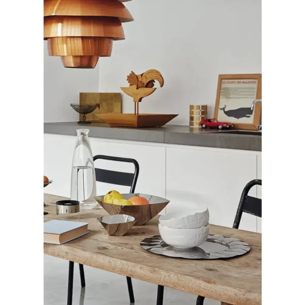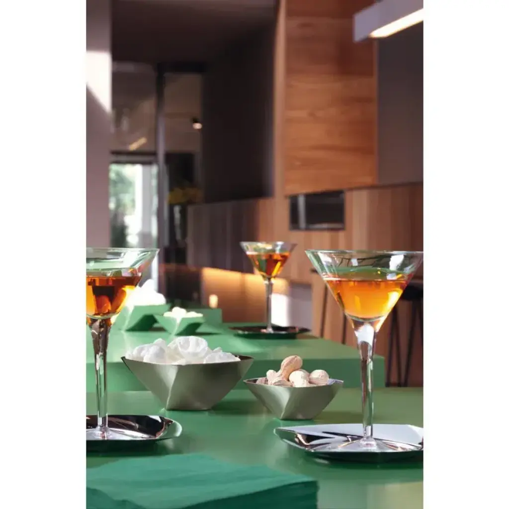 Soft lines highlighting the twisted steel, bowls of all sizes creating a complete set featuring light and sinuous forms. Steel lightness embraces each item geometry, confering futher smoothness and extreme elegance on trays and bowls.