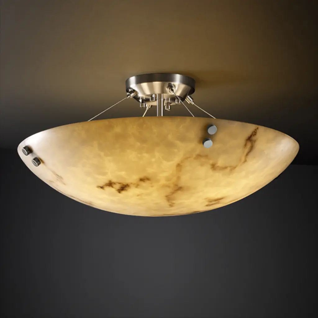 LumenAria™ - Finials 3-Light LED 21" Semi-Flush Bowl - Round Bowl Shade - Square Finials - Faux Alabaster - Matte Black - Dedicated LED