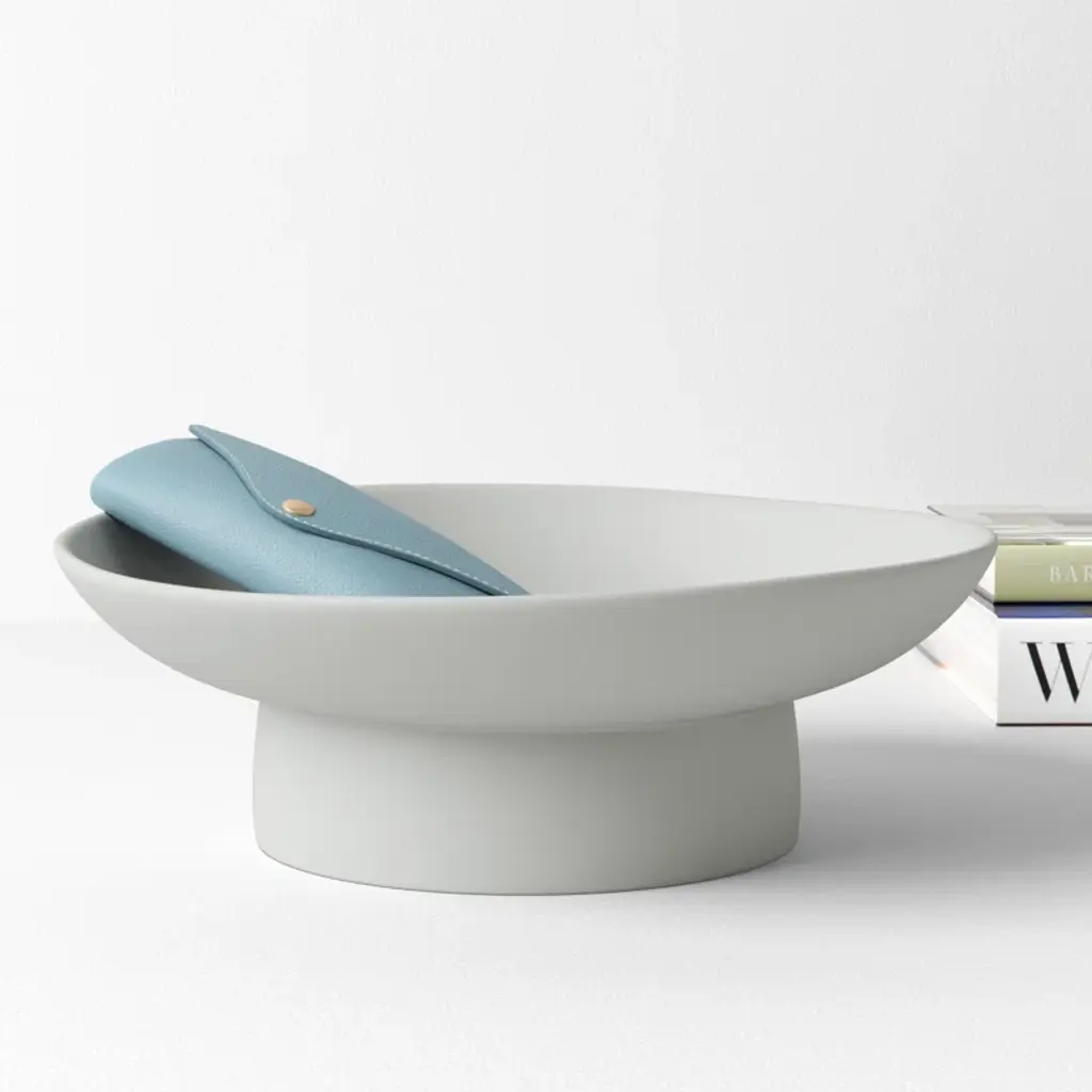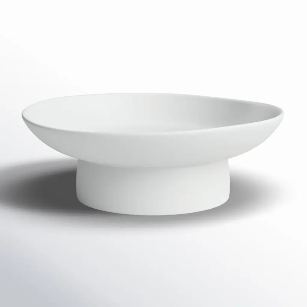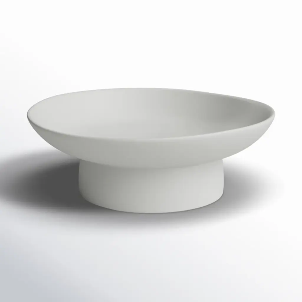 Elevate your home decor with this stunning decorative bowl. Crafted from durable stoneware, its round shape adds a touch of modern simplicity to any space. Complete with a sleek stand, this bowl is not just a functional piece but also a stylish statement. Wipe clean for easy maintenance. Imported for your convenience.