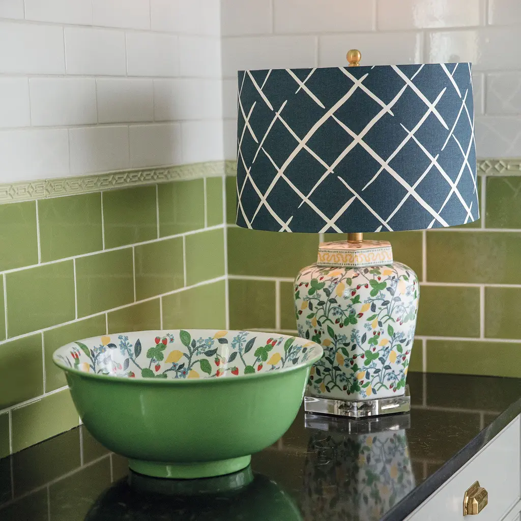 As part of their Madcap Cottage for PORT 68 collection, we love the contrast of the meadow green exterior of the center basin bowl and the Summer Crewel interior pattern inside. Its all in fun! The overall pattern name Crewel Summer is a joyful classic crewelwork needlepoint. Handcrafted porcelain bowl. 16"Dia. x 6.5"T. Dust with dry cloth. Imported. Boxed weight, approximately 16 lbs. Free shipping in the U.S.