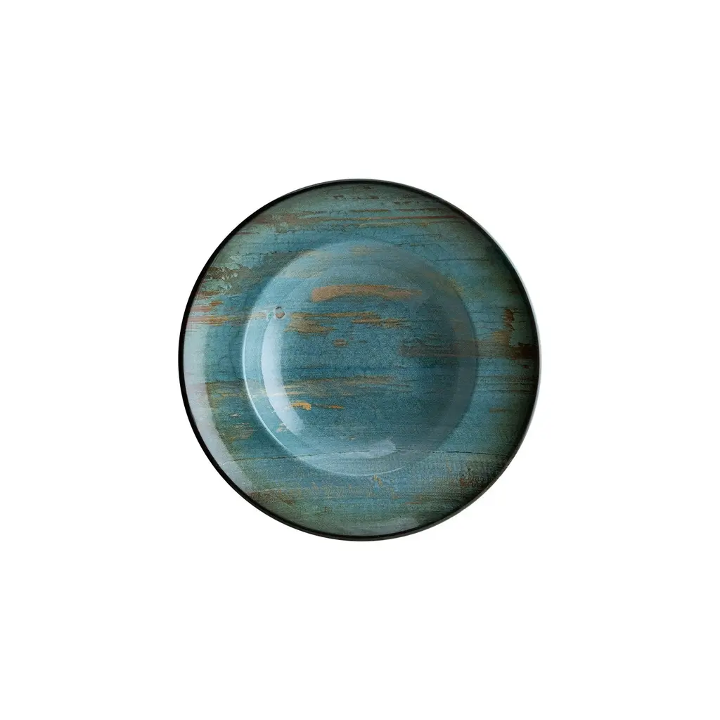 The Madera dinnerware collection features the rustic look of driftwood, a sleek silhouette, and a high gloss finish to make cleanup a breeze. Wide rim along with perfect depth creates a bowl suitable for pasta, salad or soup. Sold exclusively at Turgla Home.