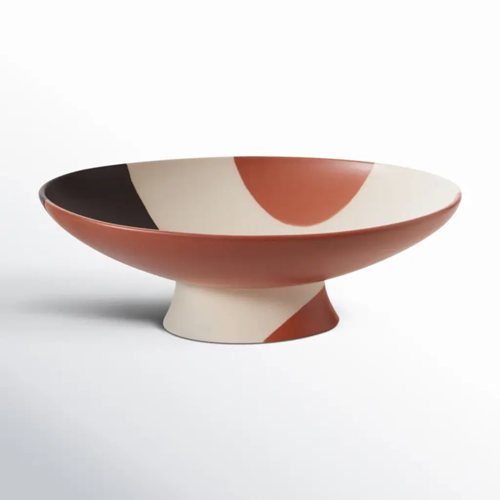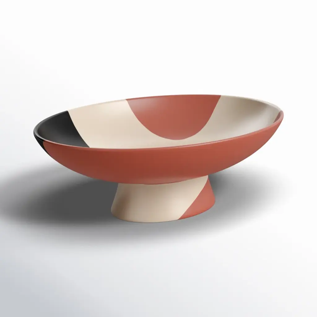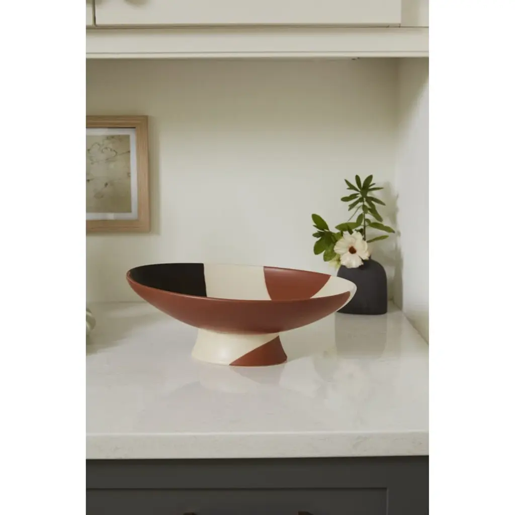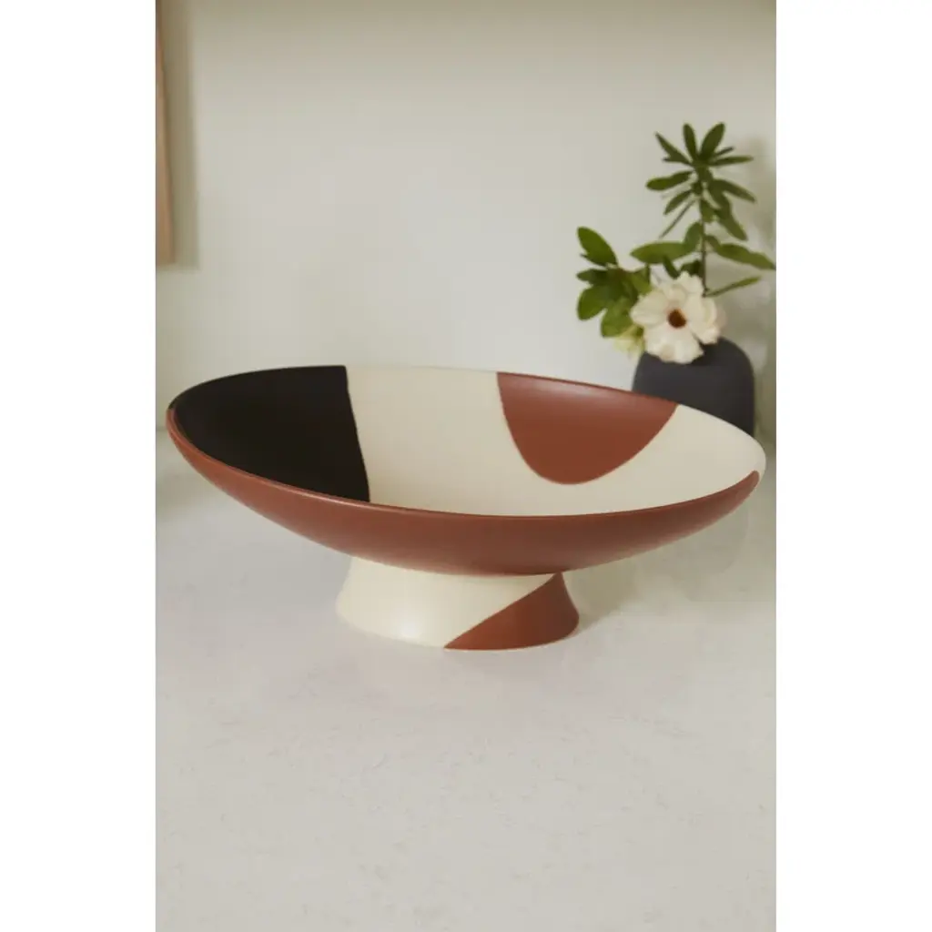 Display artisanal craftsmanship with the versatile, medium ceramic Madrid footed bowl. Featuring a food-safe finish on top of on-trend, abstract color blocking made by glaze dipping, the final product is smooth to the touch with a matte finish. With its unique oval-shaped footed base & generous depth, this sculptural, statement vessel adds a pop of color to interior design & serves as a beautiful fruit bowl or console table catchall.