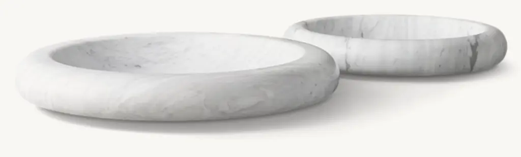 Clean lines and luxe materials lend a sculptural sensibility to our solid marble bowl. Precision crafted of Italian Carrara or Black Marquina Marble, each one is characterized by rich organic texture and a tracery of natural veining that reveals the stone's inherent beauty. A honed finish imparts subtle luster.