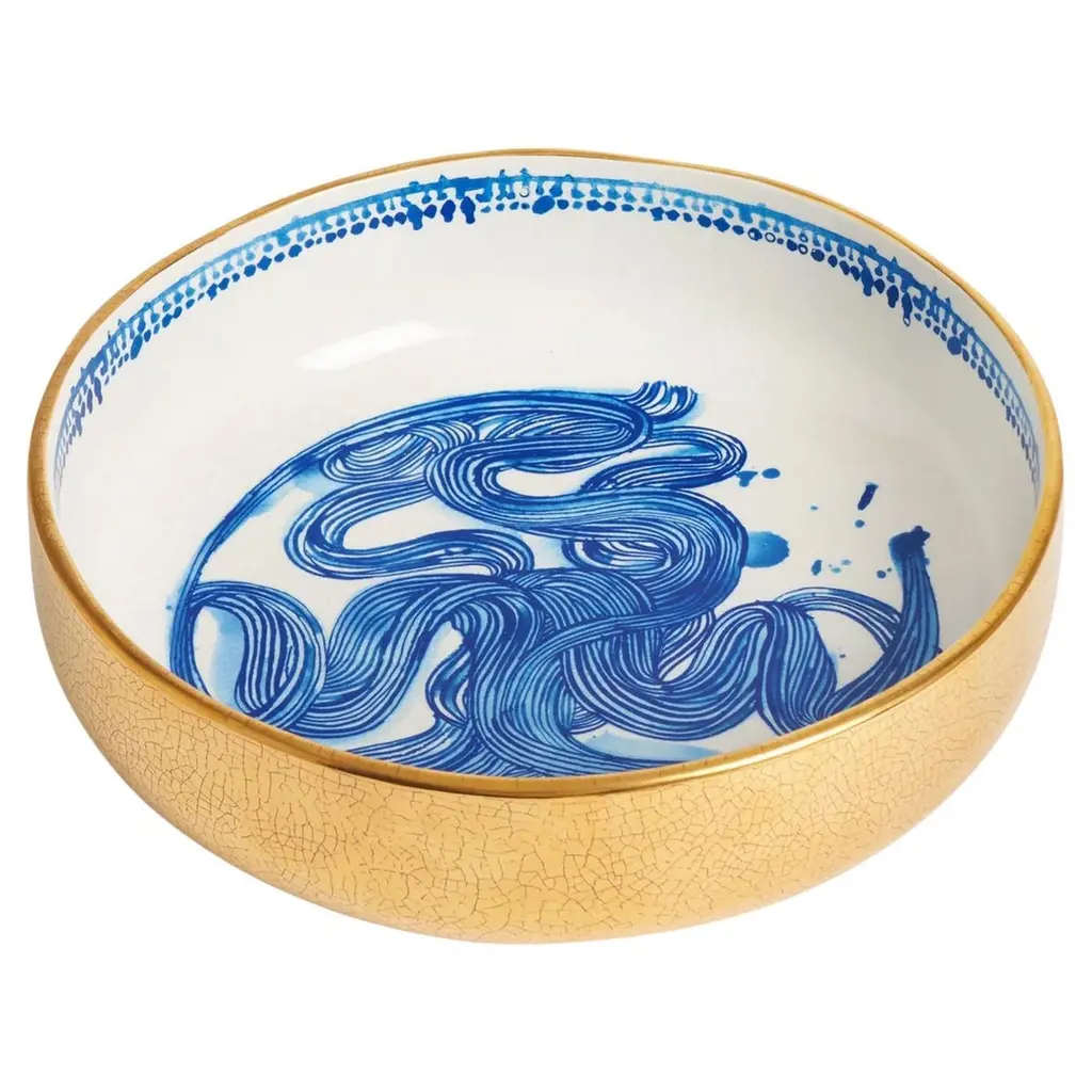 Marbre Large Bowl In Blue, Marbled Pattern, Ceramics