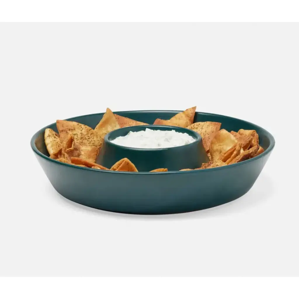 Marcus Midnight Teal, Chip And Dip Bowl, Stoneware