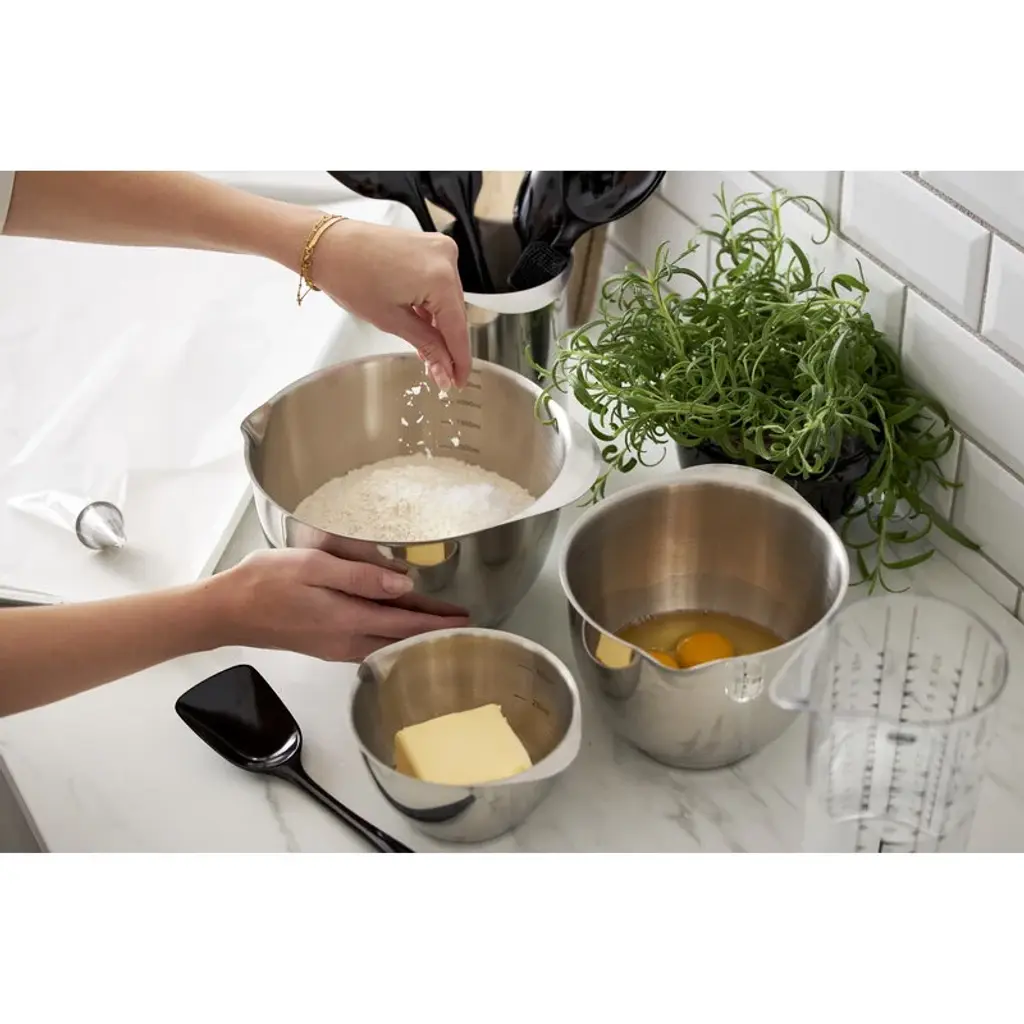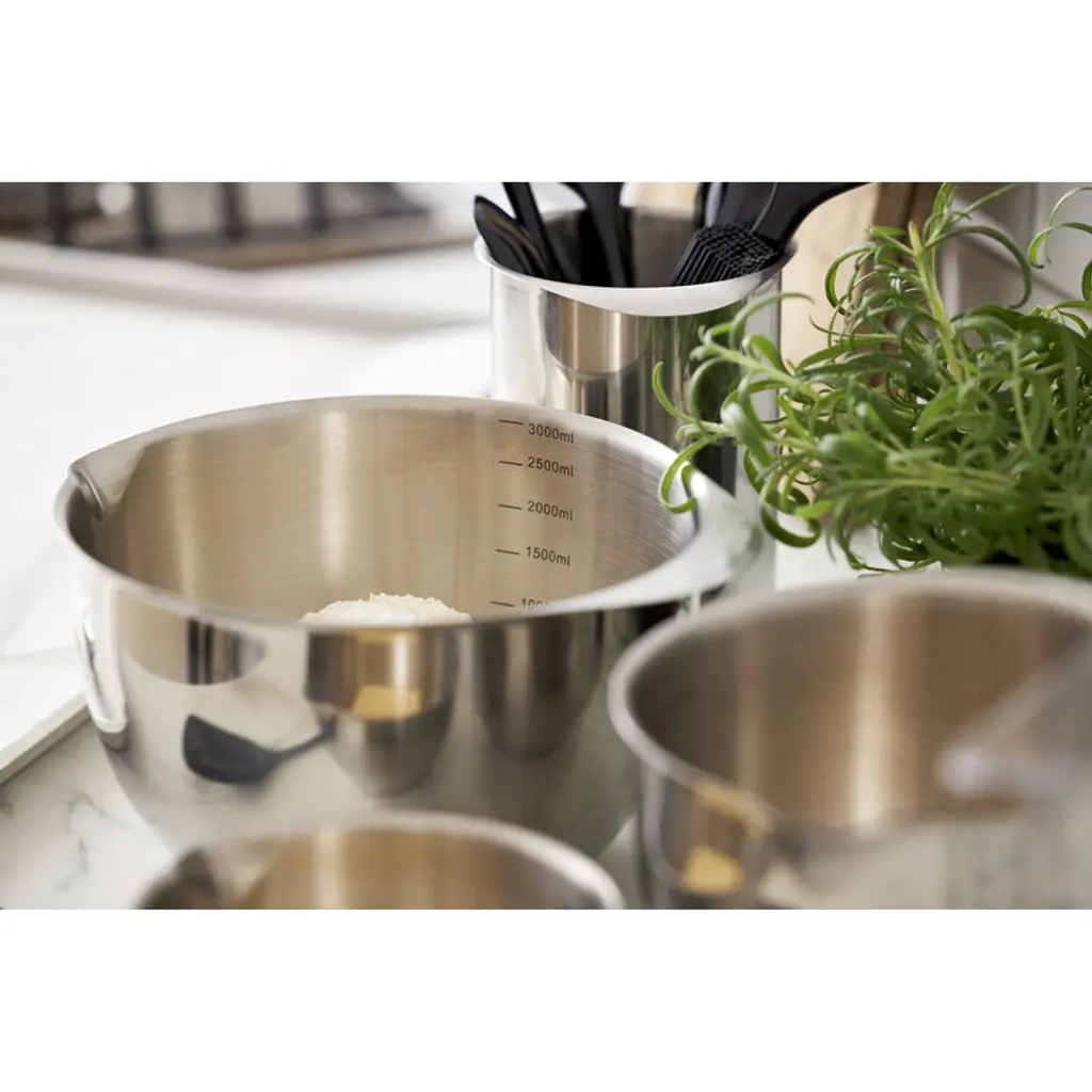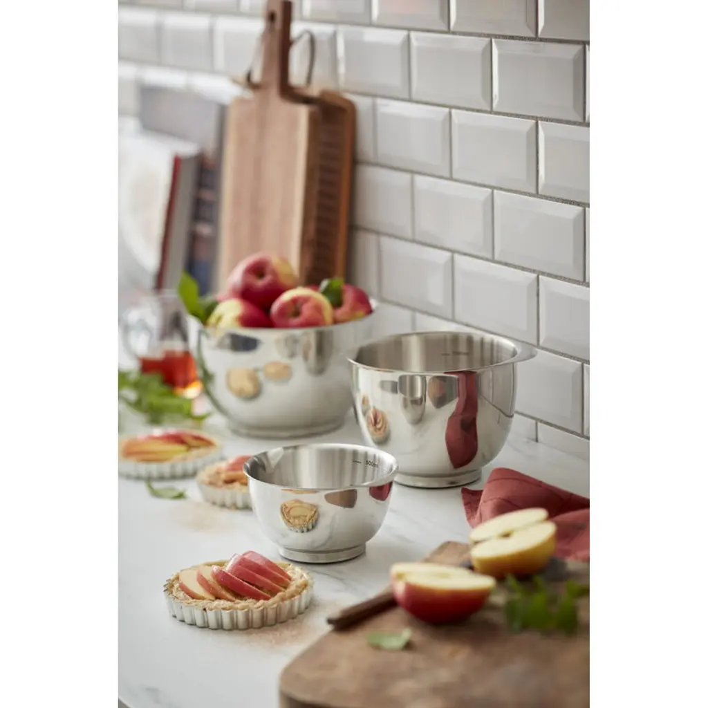 Rosti's Margrethe mixing bowl is a versatile kitchen essential, perfect for passionate bakers and creative cooks as well. Made from durable steel, the elegant bowl is satin-finished on the inside and polished to a high gloss on the outside. The Margrethe bowl combines practicality with timeless design and is microwave, freezer and dishwasher safe. Designed by Sigvard Bernadotte and Acton Bjørn, the mixing bowl proudly bears the name of Denmark’s Queen Margrethe II, adding a royal touch to its everyday charm.