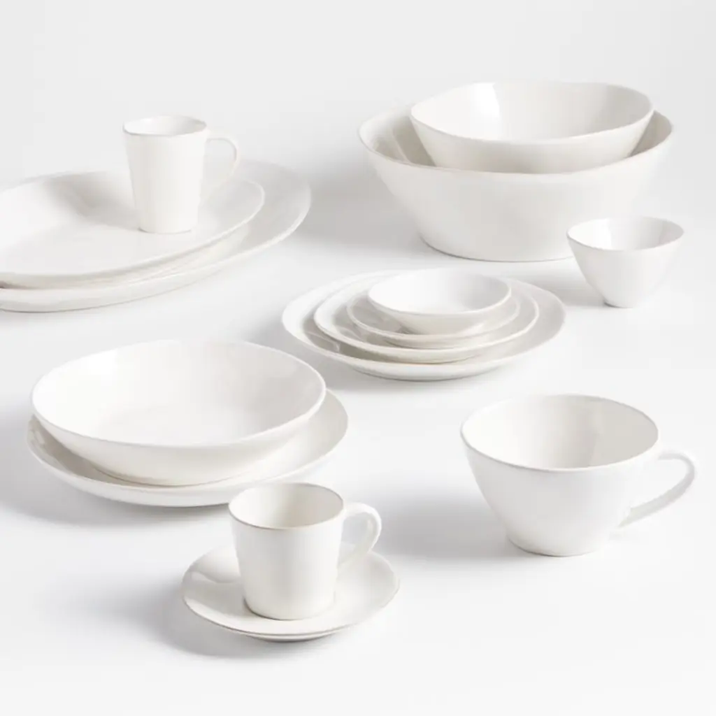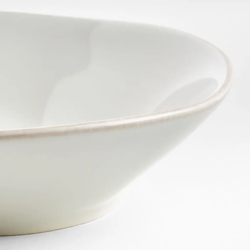 Our most coveted casual dinnerware collection recalls the warm hospitality of Portugal's quaint seaside cafes. The dip bowl's soft, organic shape brings a warm and welcoming feel to everyday and special-occasion dining. Glazed glossy white for a sun-baked Mediterranean look, each free-form bowl is hand-antiqued at the rim by skilled craftspeople. The artisanal-yet-dishwasher-safe bowl beautifully presents mango salsa, hummus and beer-cheese dip, mixing and matching effortlessly with the other pieces in our exclusive Marin collection.