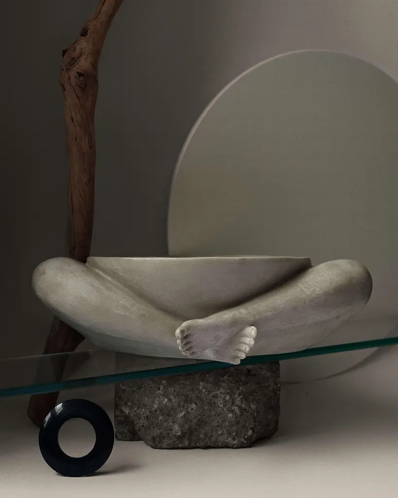 Meditative Pose Sculptural Legs Bowl Sukhasana Ii In Hand-Crafted Resin + Stone