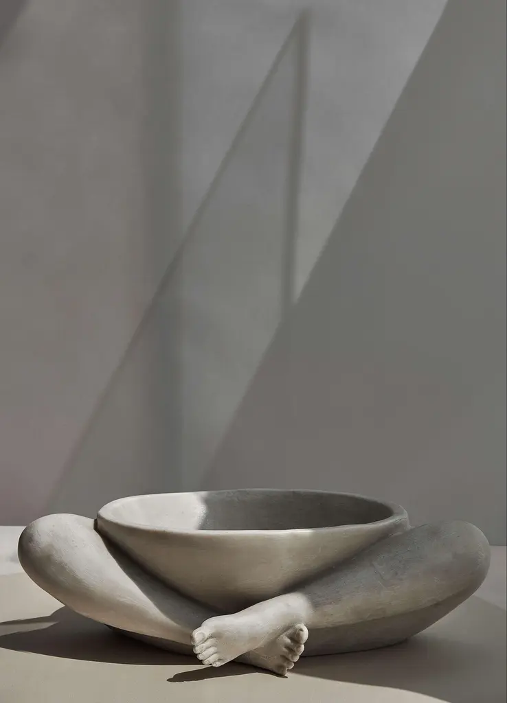 Our Sukhasana II is our bowl version of our Sukhasana sculpture, inspired by the calming pose commonly used for meditation and practicing breathing exercises. It can be used by itself or with elements like plants, fruits, etc.This collection is inspired by the seducing form of the human body. Pieces that speak for themselves. The pieces in this collection are carefully hand-sculpted in clay and later hand cast in a mixture of resin and stone.