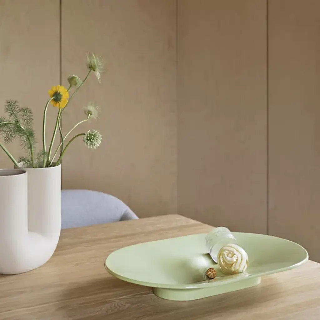The Mere Bowl from Muuto is a study in sculptural simplicity. This ceramic stoneware creation, designed by Studio Kaksikko, transforms the humble bowl into an art piece. Its defining feature – a central line that folds outward to form the bowl's shape – creates a visual illusion of effortless grace. The high-gloss glaze enhances this effect, catching light and shadow to emphasize the bowl's unique form. Perched on a discreet foot, the Mere Bowl appears to hover, adding an ethereal quality to its presence.