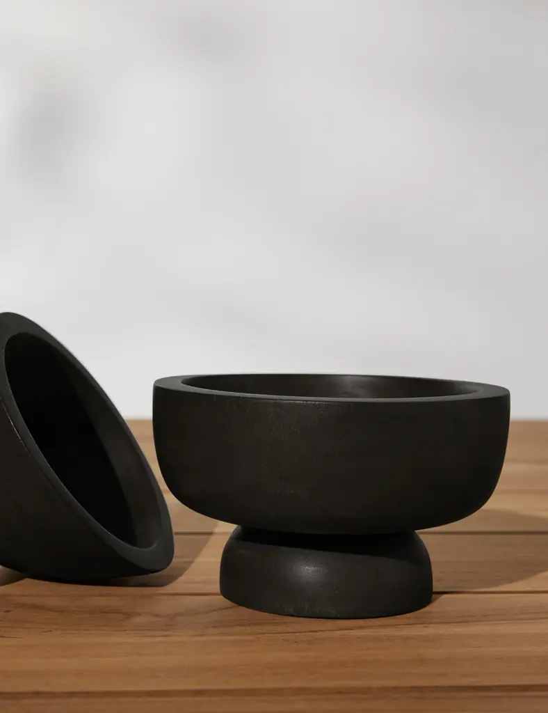 Artisan-made with a signature look, these small wood bowls are a versatile addition to any kitchen. They're the perfect size to add some style to your mise-en-place or serve olives, dips, and all those small touches that elevate a casual hang. This mini bowl set is from our exclusive Sarah Sherman Samuel collaboration and features all the trademarks of her warm, edited style.
