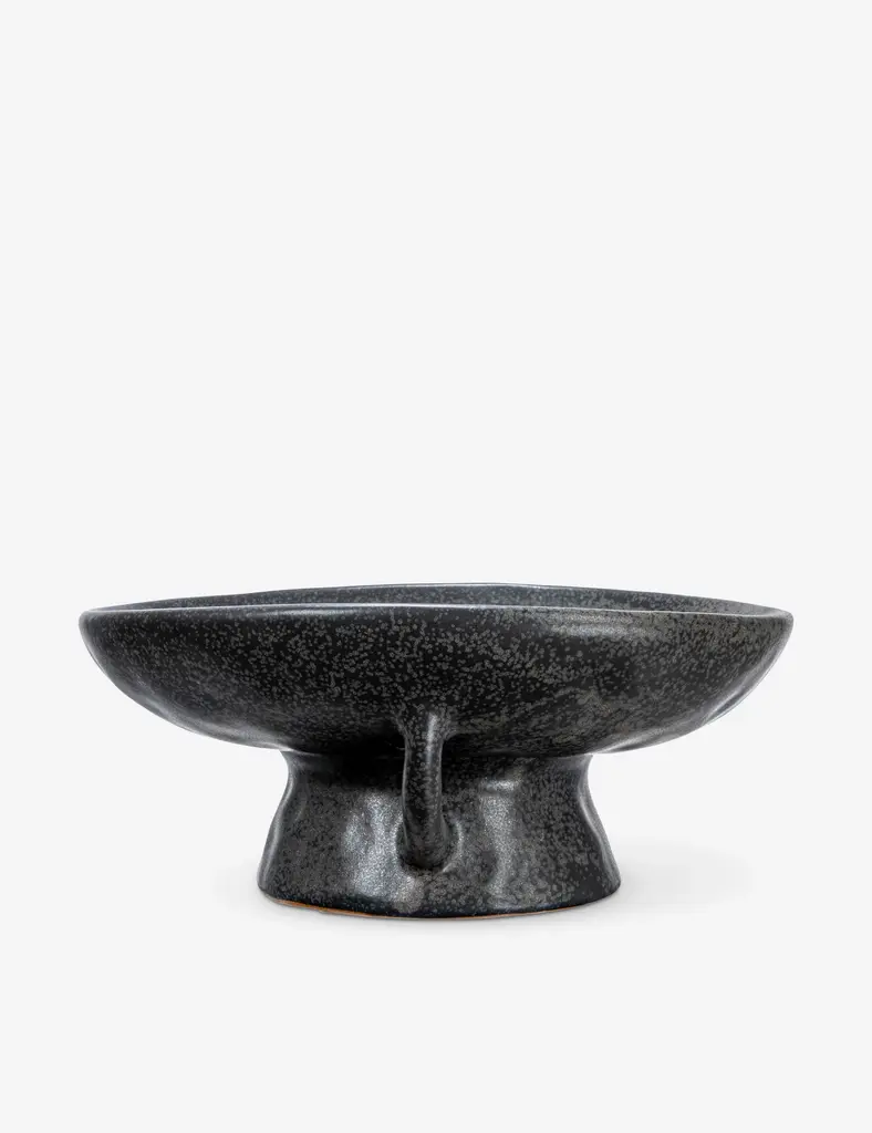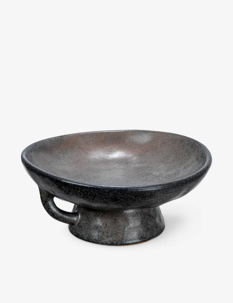 With its handled design and footed base, this stoneware bowl brings sculptural impact to any surface. The reactive glaze adds to its unique characterevoking a timeless quality. Fill this bowl with dried botanicals or aromatics to imbue your entryway or lounge with a warm, inviting touch that invites guests in.