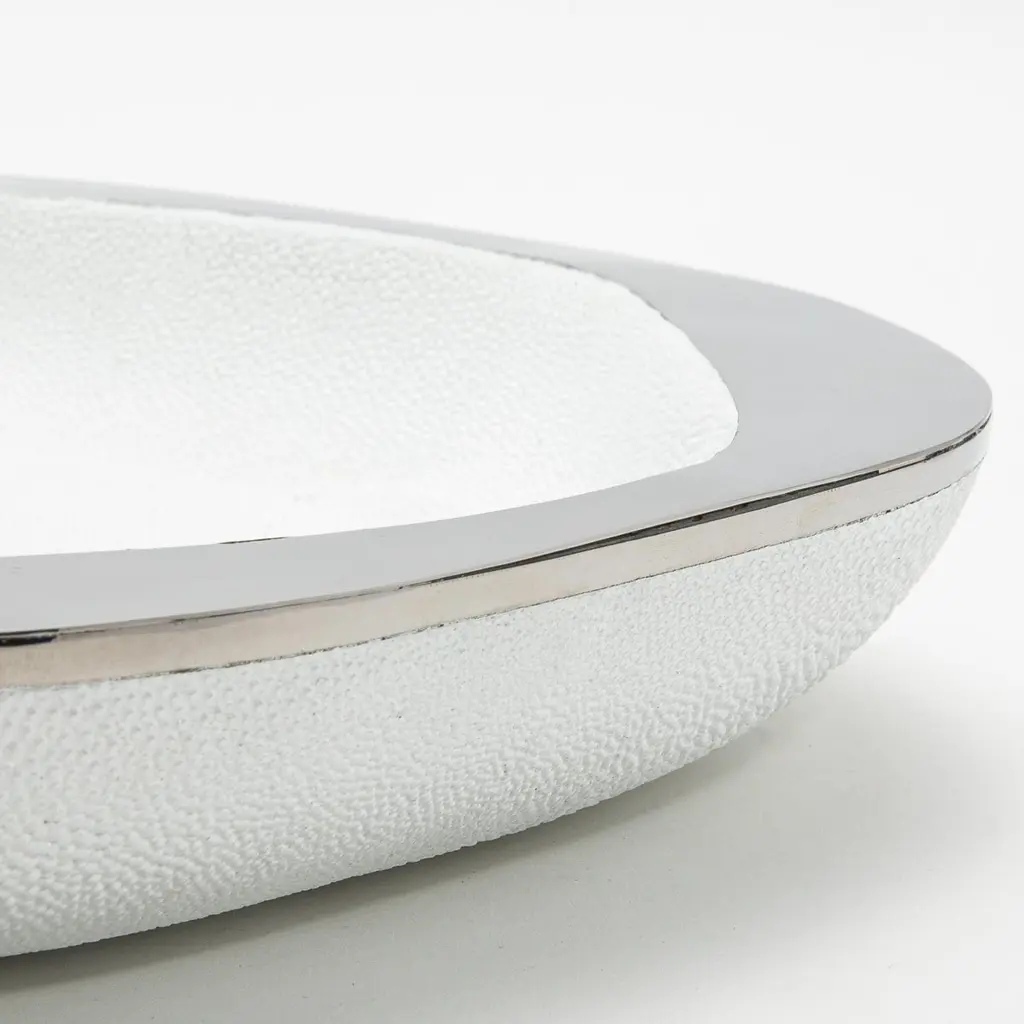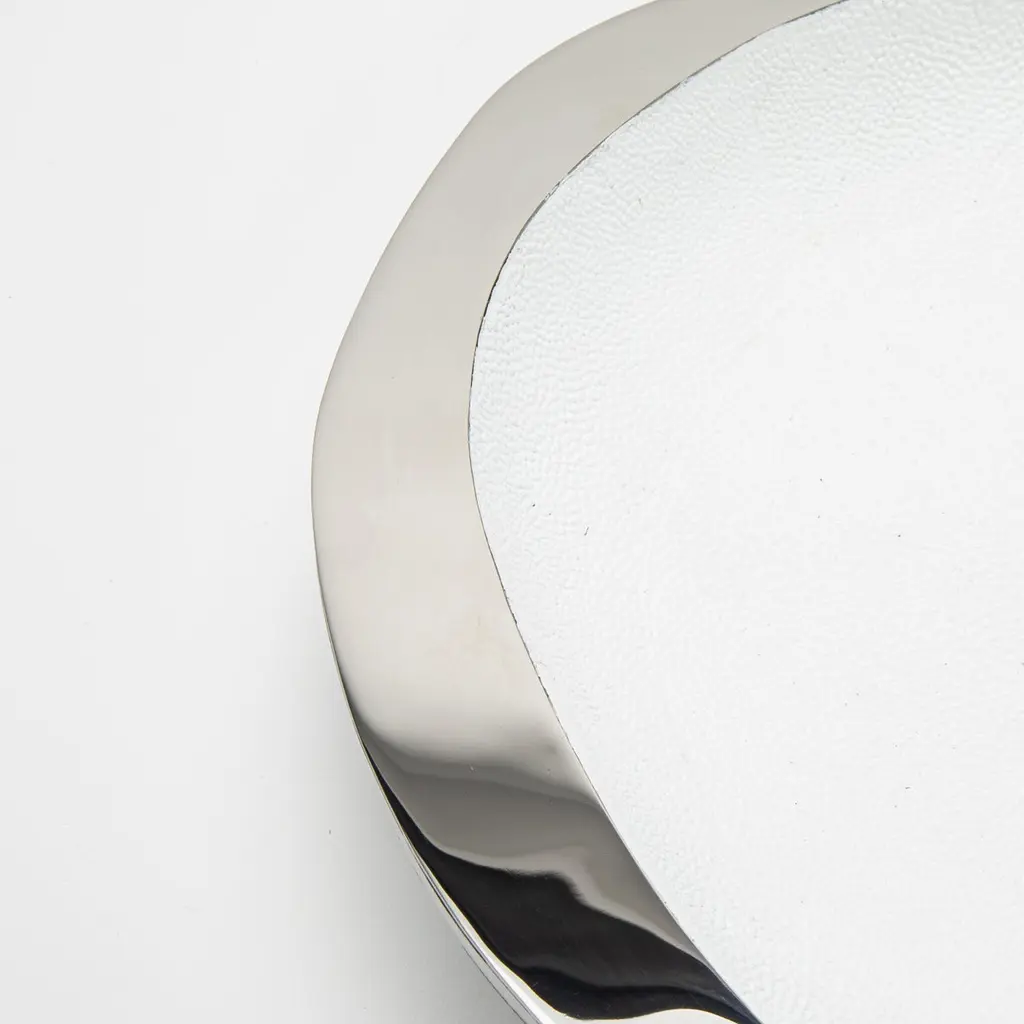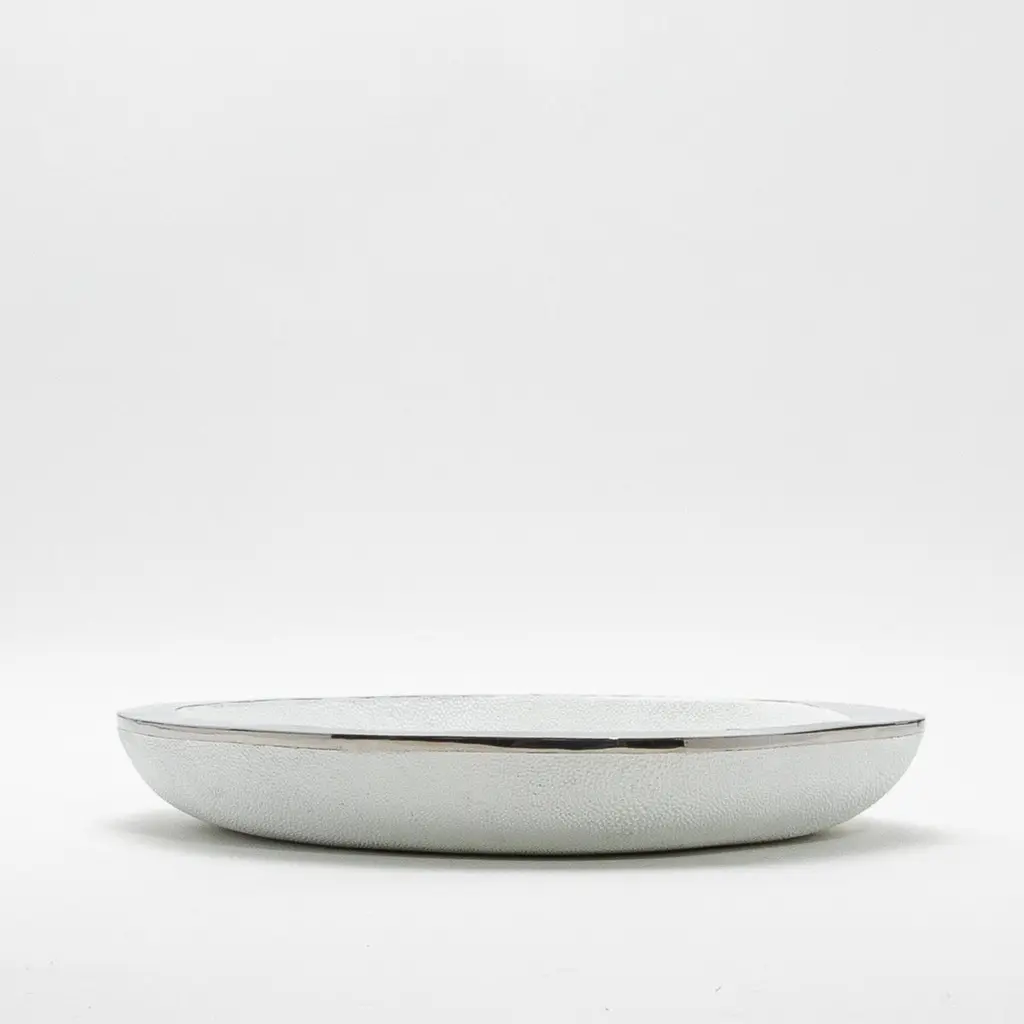Modern Bowl In White Shagreen With Stainless Steel Details By R&y Augousti