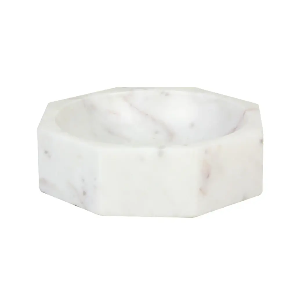 Your new sculpted beauty Carved from a solid block of marble the Modernist Octagonal Marble Bowl is a sculpted and elevated display piece ready to make a statement within your home. The perfect piece for a fruit display or as a catch all in the entryway or on the kitchen counter, this marble bowl showcases a unique contrasting shape and almost ceremonial quality. Ready for everyday culinary use or for bringing an elevated touch to your living or sleeping space, this bowl pairs well with a variety of interior designs. Why We Love It: Features