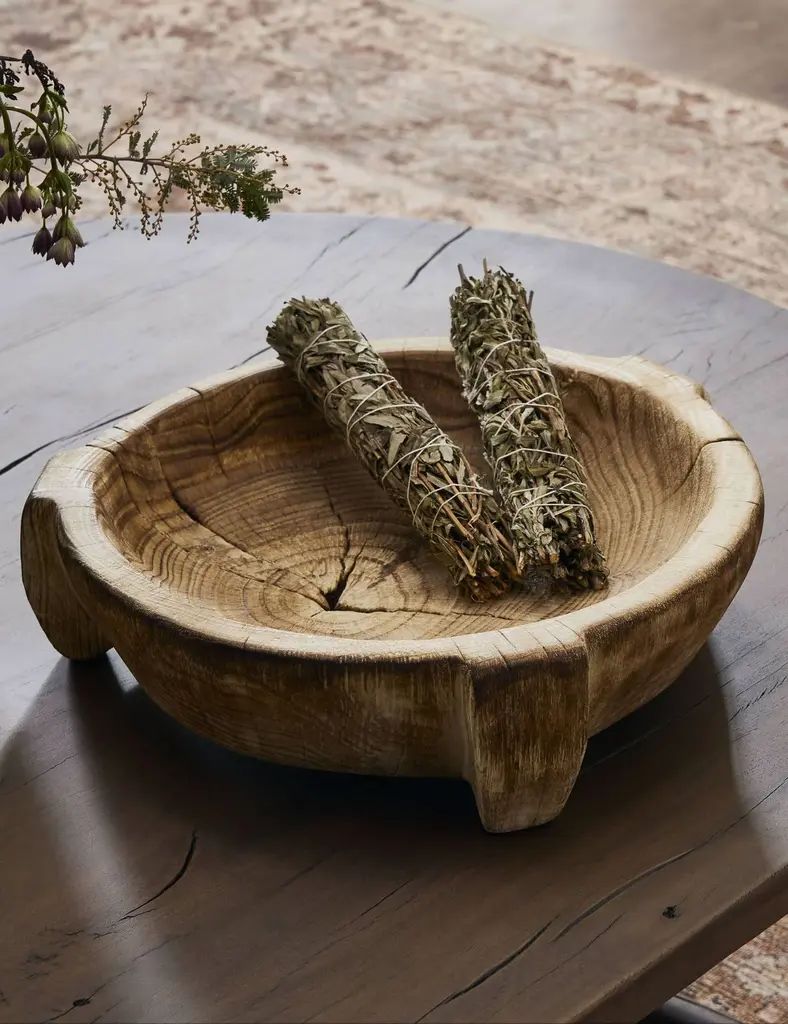 Four Hands brings their exceptional craftsmanship to a timeless collection rooted in Amber Lewis' perennial California style. Showcasing natural embellishments, this rustic bowl is a rugged but refined choice on a console to coffee table. Fill it with decor or fresh citrus or use it as a catch-all to keep your tabletop tidy.
