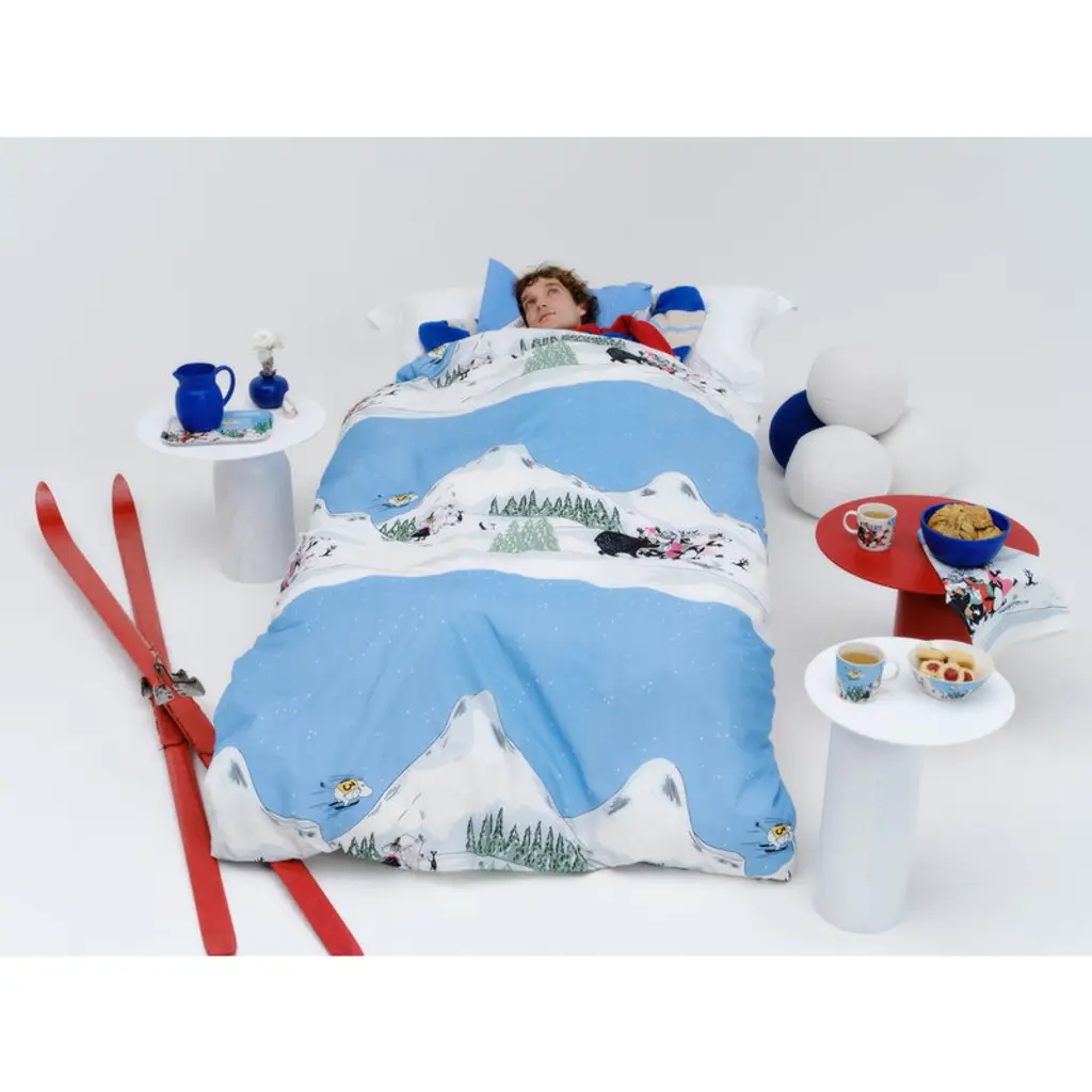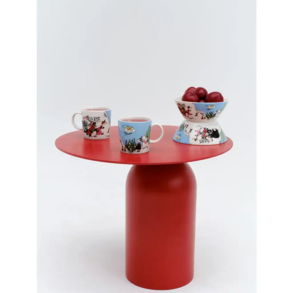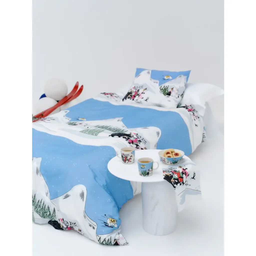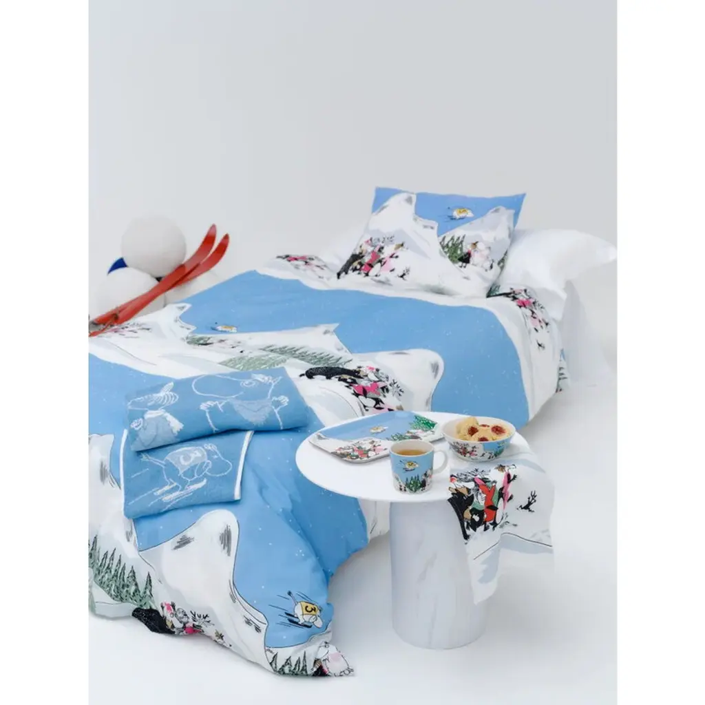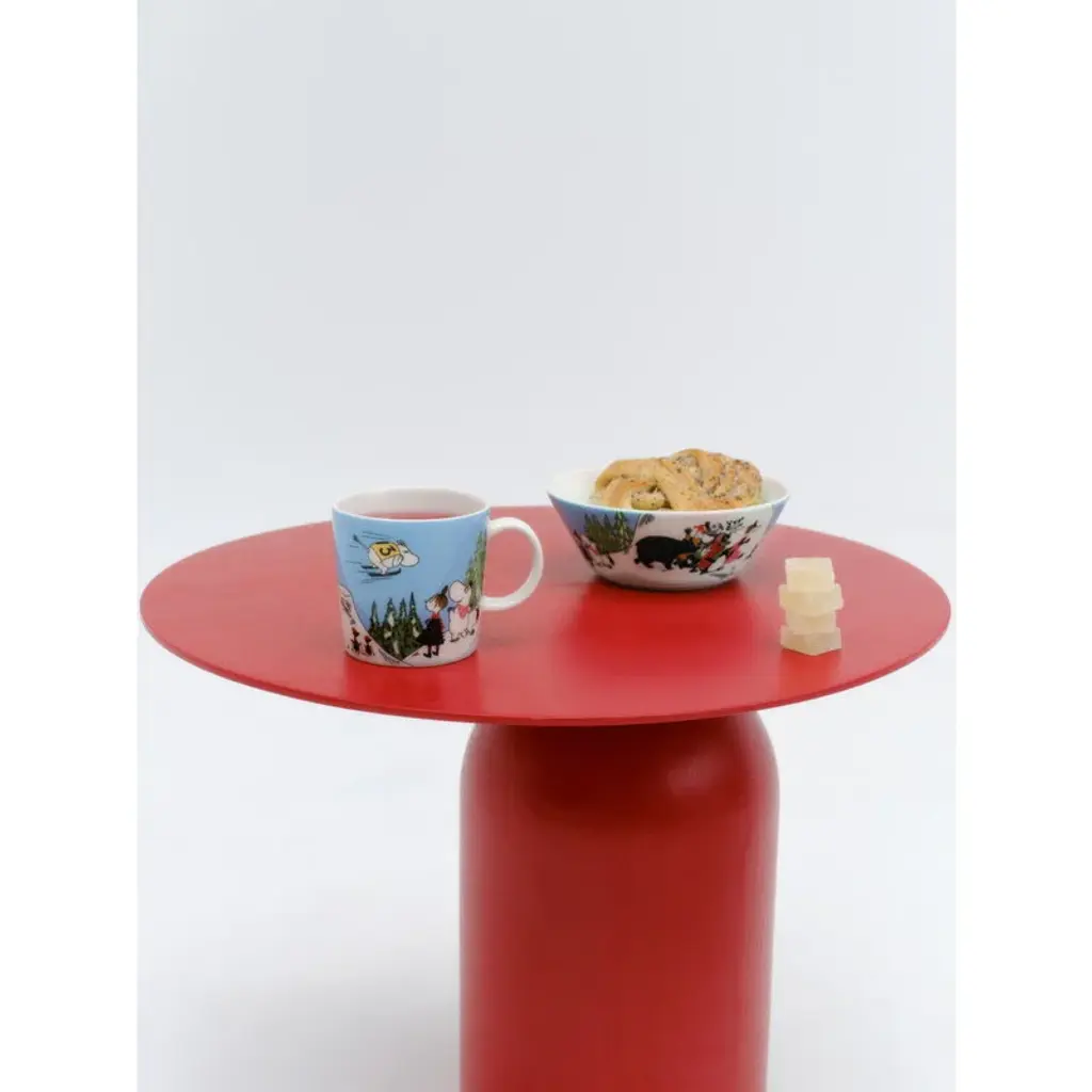 Moomin Arabia's Ski Jumping bowl is part of the seasonal Moomin collection for winter 2024. This Moomin bowl illustrates Moomintroll competing in the Moomins’ Winter Games. The daring jump, ending in the treetops, is all about impressing Snorkmaiden, who is watching from below. The artwork is based on Tove Jansson's comic story Moomin's Winter Follies from 1955. Moomin Arabia's winter collection is released each year at the beginning of winter and is available for a limited time only. Inspired by the wintery atmosphere of Moominvalley, these products feature cheerful characters drawn from Tove Jansson's original illustrations. The Moomin dishware uses Kaj Franck's Teema series, celebrated for its timeless and practical design.