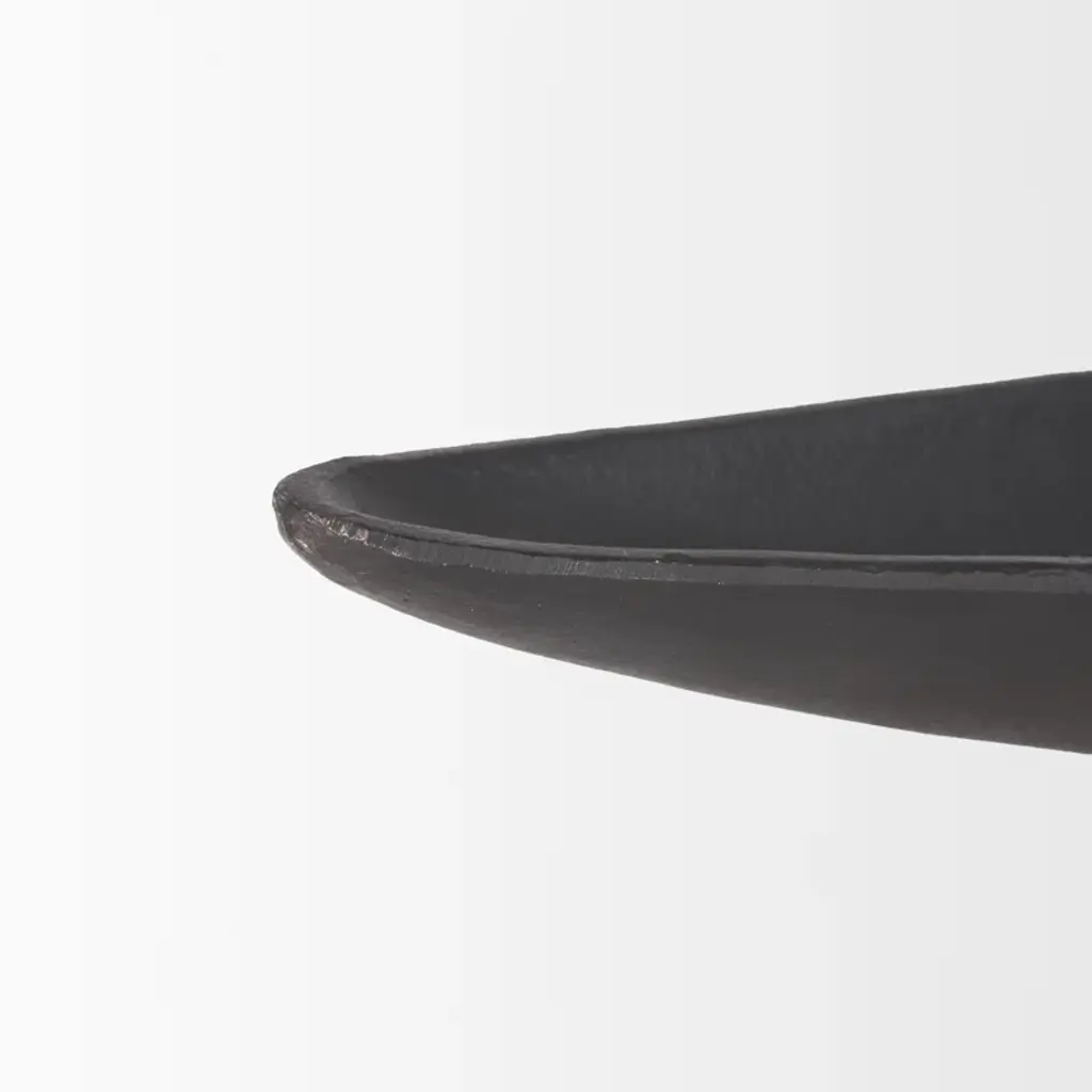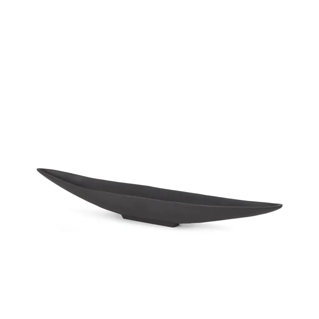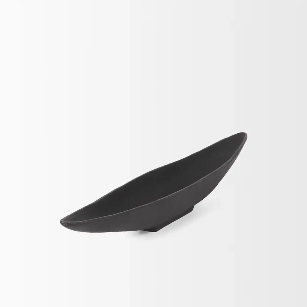 Morant is a canoe-shaped solid cast aluminum tray that is finished in a textured matte black.