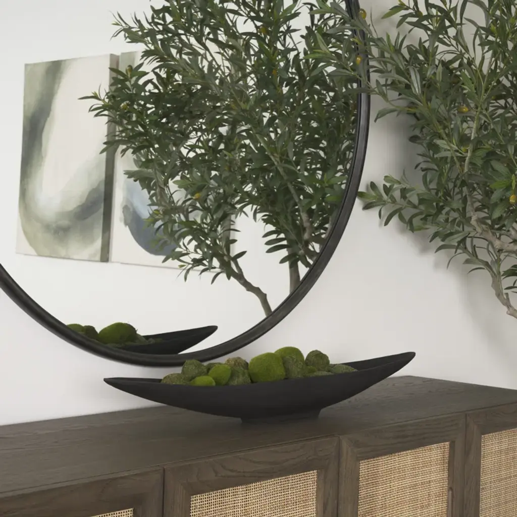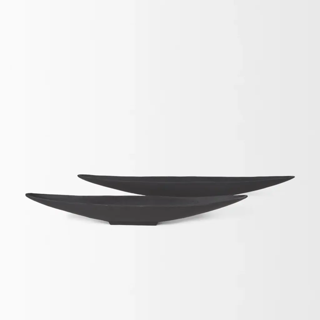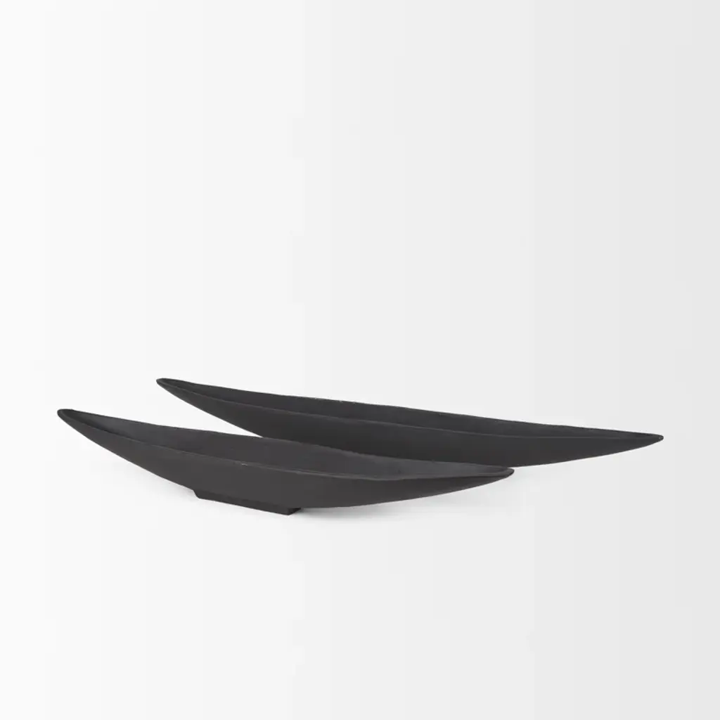 Morant is a canoe-shaped solid cast aluminum tray that is finished in a textured matte black.