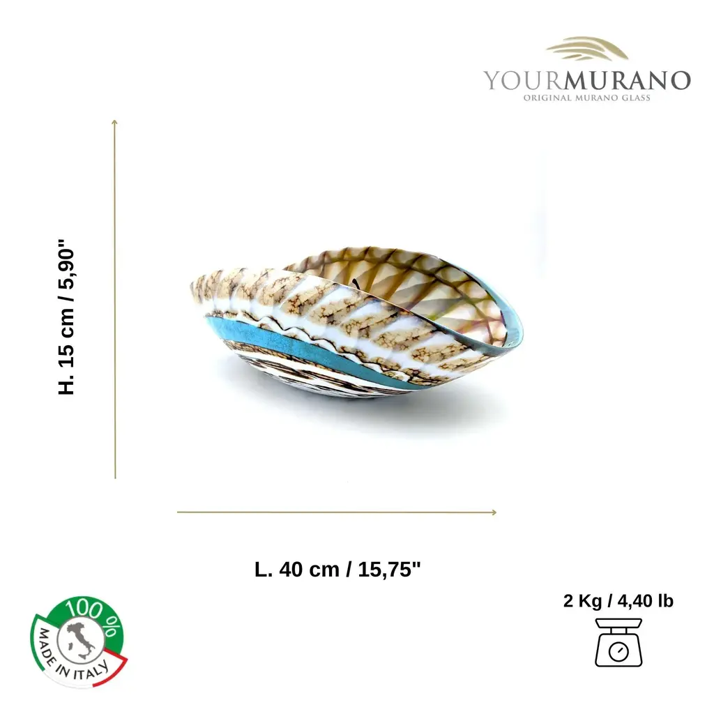 Murano Glass Centerpiece: A handcrafted work of art for your home This splendid centerpiece in Murano artistic glass is a true mix of colours, which captures attention at first glance. Handcrafted by Murano glass masters, its unique nuances make each piece an exclusive work of art. Labeled by Maker