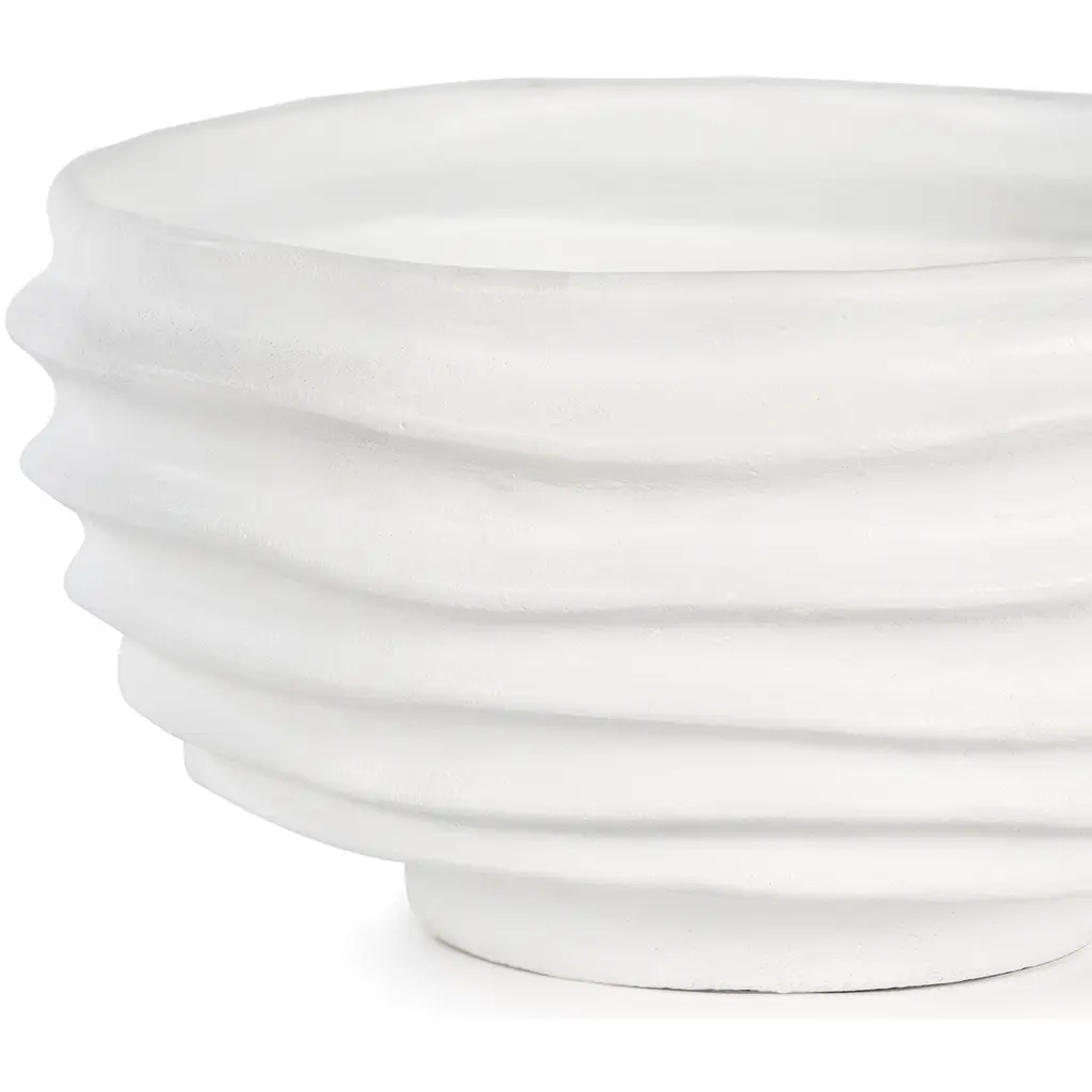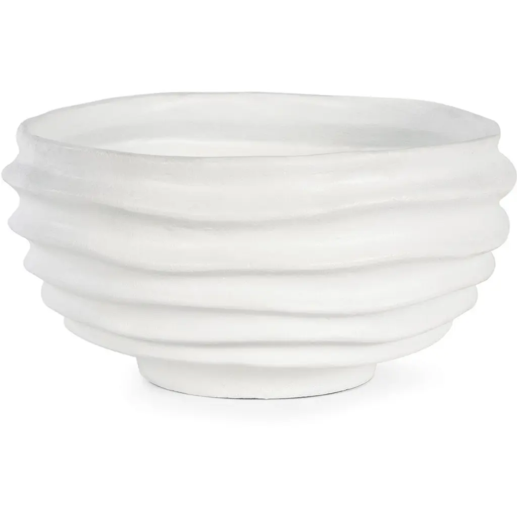 The Nabu Metal Bowl fuses contemporary style and exquisite craftsmanship, effortlessly adding a sophisticated touch of texture to any room. Crafted from sculpted metal, the Nabu has an irregular groove pattern with a white, plaster-like finish. Each groove is carefully sculpted, adding depth and character.