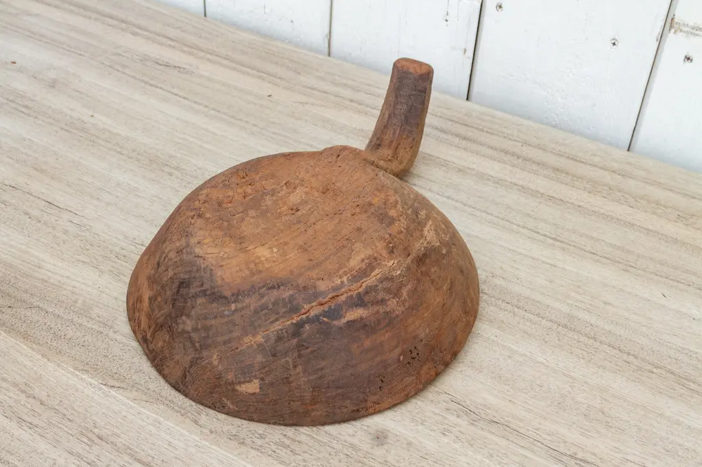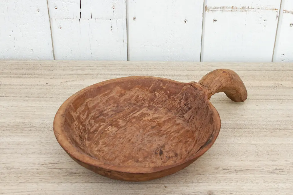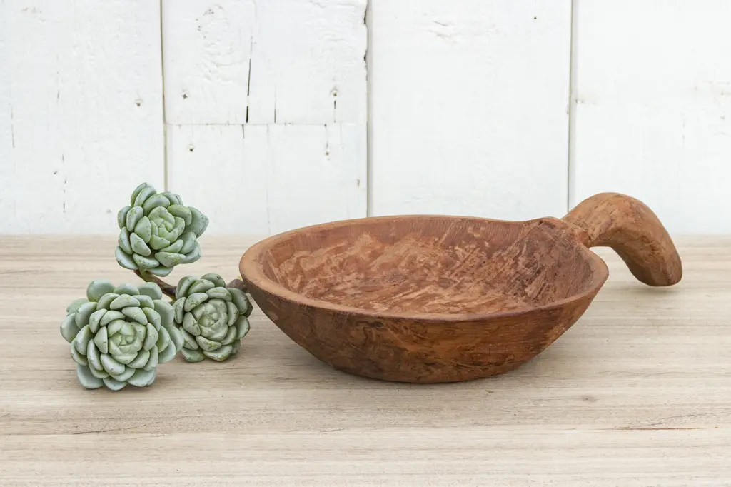 Crafted from a single piece of wood this lovely looking bowl has rounded edges and a rounded handle. This bowl would be great as table top decoration or standalone on a kitchen island.