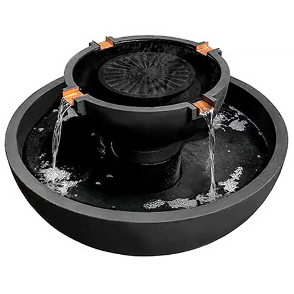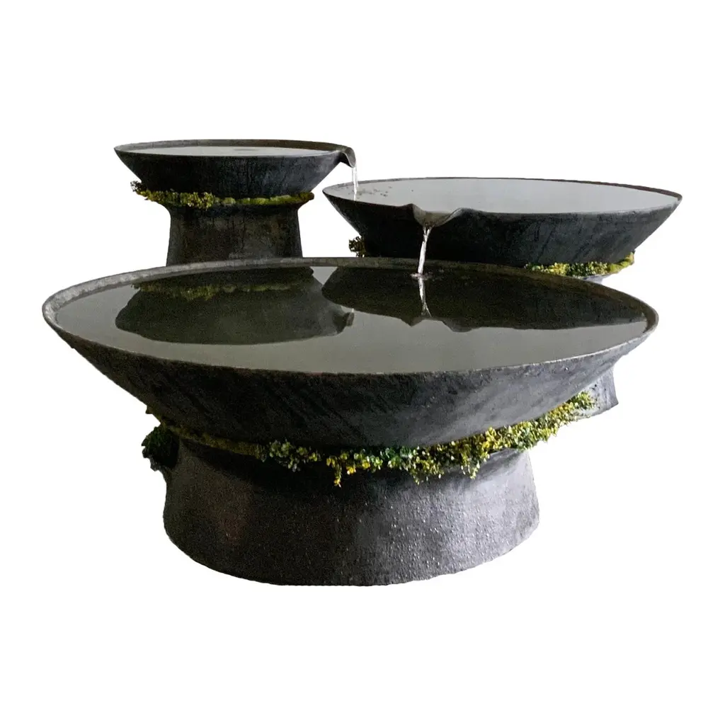 Nature Spring Tabletop Water Fountain With 3 Raku Bowls, River Rocks, And Electric Pump - 7", Silver And Black