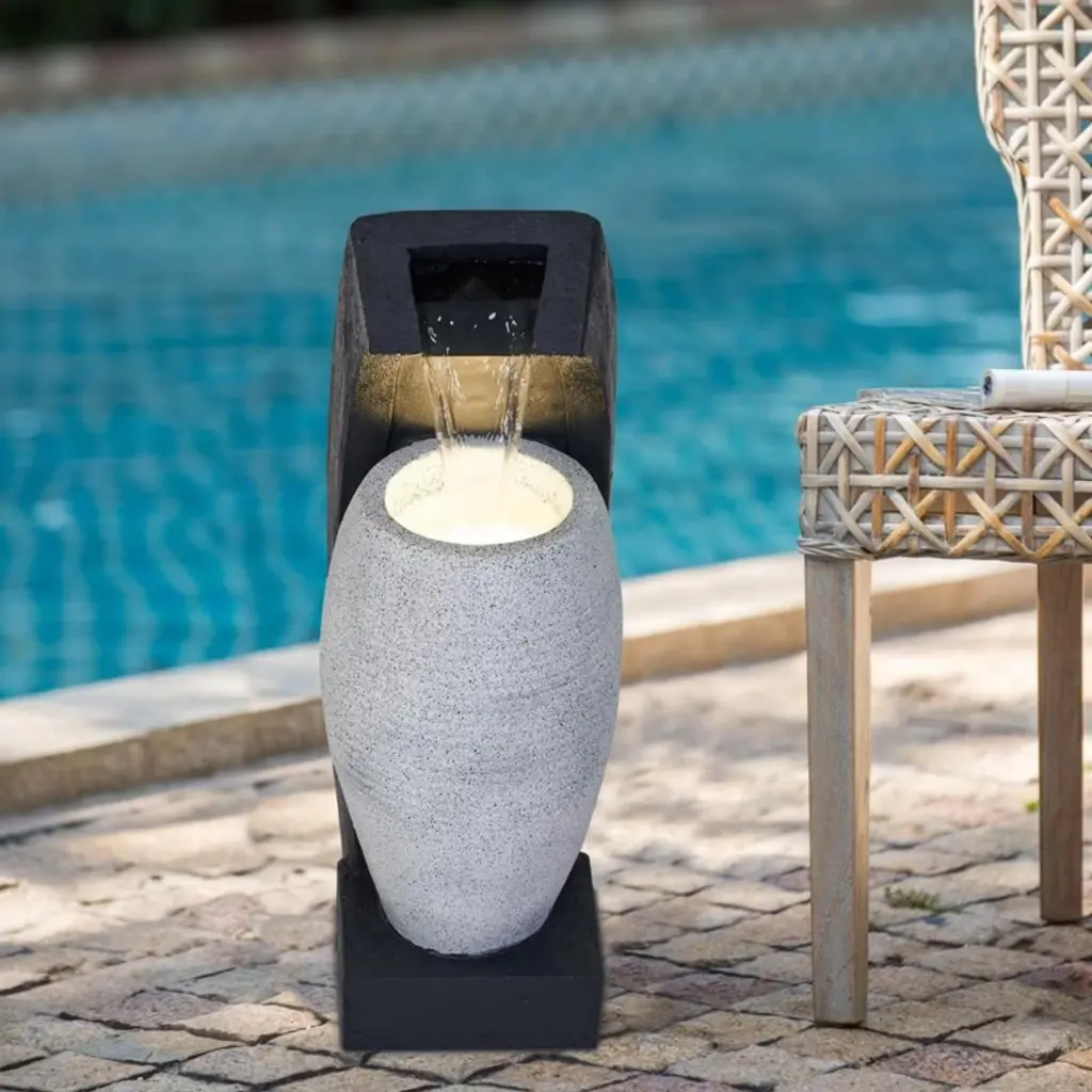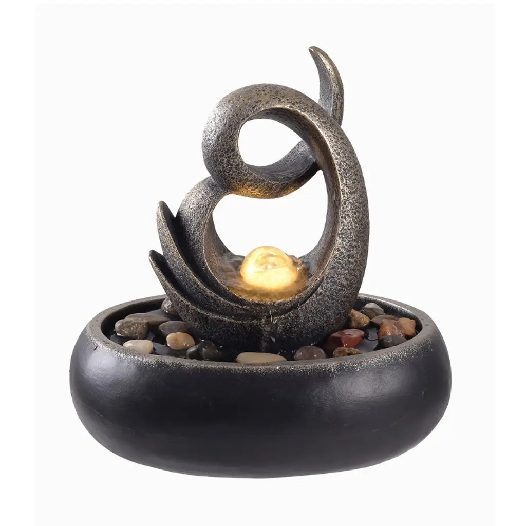The soothing water sounds and modern look of the 7" Tabletop Water Fountain by Nature Spring brings tranquility, relaxation and beauty to your living or work area. The indoor fountain features a polyresin construction for durability, three tiers of contemporary raku bowls for water to fall over, river rocks for the basin, a built-in electric pump, and is easy to set up for low stress assembly. Whether you use this fountain as a decoration on a desk in your office, in the corner of the kitchen or on a small shelf in the living room, the soothing sounds of this table top fountain are sure to leave a lasting impression!