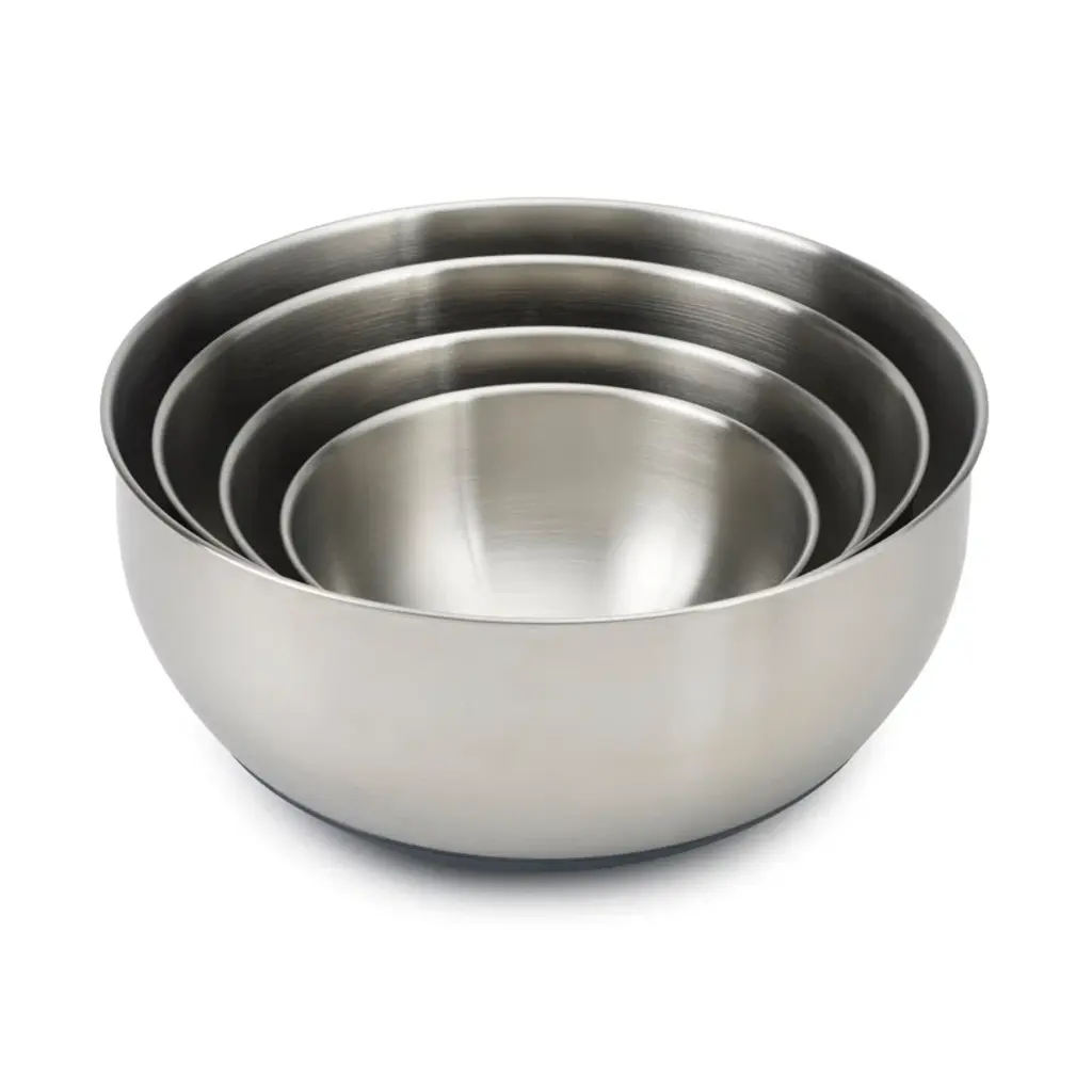 Your mise-en-place food preparation just got easier with this professional 10-piece stainless steel bowl set with a silicone base and lid from Viking. Made from durable, stainless steel, these bowls are perfect for prep, mixing, serving, and everything in between! Inside the bowls, you’ll find convenient measurement markings for quick and easy measurements. The extended edge at the top of the bowl makes for an easier grip during mixing, and the silicone base not only provides added stability during tasks but also helps eliminate slipping during use and prevents scratching of your countertop. Each bowl comes with an airtight silicone lid, enabling you to prep ingredients in advance and keep them sealed so they are fresh and ready to use when you need them. The Viking 10-piece stainless steel bowl set can be nested for compact and easy storage when not in use. The bowls are refrigerator and freezer safe for short-term food storage as well. The bowls are dishwasher safe, lids are handwash only. Stainless steel is prized in professional kitchens due to its durability and resistance to corrosion, and because it is easy to sanitize. As a non-porous material, no liquids or other contaminants can penetrate the surface of stainless steel, making it the perfect kitchen companion for any professional cook. Stainless steel is also non-reactive, so no matter if you are prepping aioli or acidic foods like salsa, your ingredients will taste fresh and delicious each and every time.