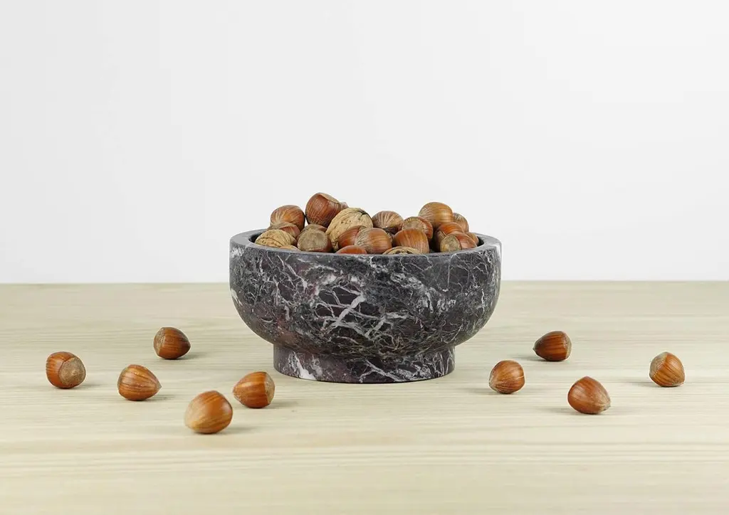 Memory, made in Red Levanto marble, designed by Cristiforo TrapaniContemporary chefs love to construct their culinary creations to enhance their impact; it’s not difficult therefore, to imagine they also love to create the props. Cristoforo Trapani, chef of Magnolia, the stellar restaurant at the Hotel Byron in Forte dei Marmi, has translated his culinary creativity to design. These two worlds meshed instantly: at the table or on a sideboard, his tiered cake stand PRE, hosts sweet and savoury finger food to be offered to guests in a creative and unexpected way. The bread basket of the Apuan Alps, in white or black marble, is ready to cradle the great Italian bread making tradition; the artichoke brazier is his chef-d’œuvre, and the soup tureen, are all objects of a simple cuisine that is redolent of lemons, sea and sun. They are not limited to functionality, but gleam with the marble’s calcite.From stellar kitchens to the table. The Memory bowl is an ancestral reminder, a symbol of the vital relationship between people and food. As necessary as it is perfect for serving soups, fruit salads or dried fruit. Size: 17 x 8.5, smooth finishing. Commercial name: Memory, Magnolia table collection by the Michelin Star Chef Cristoforo Trapani, Magnolia restaurant Byron Hotel Forte dei Marmi (Italy). Also available in black marquinia marble. Made in Italy, hand finished.