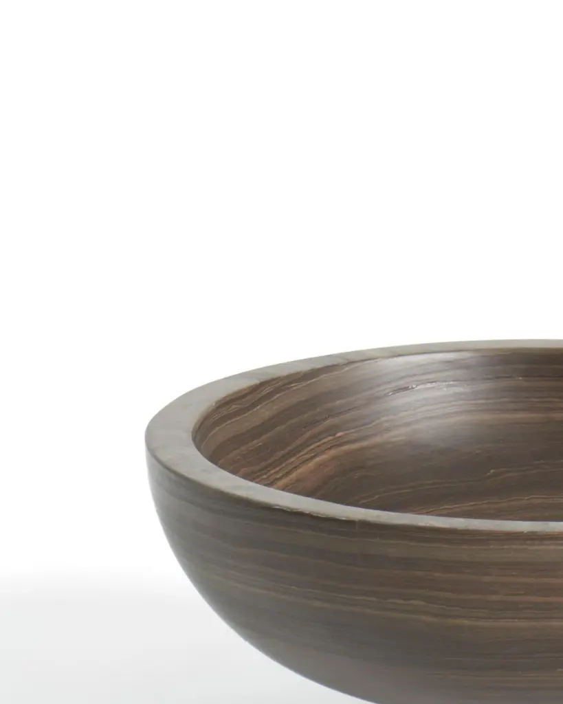 New Modern Fruit Bowl In Brown Marble, Creator Karen Chekerdjian