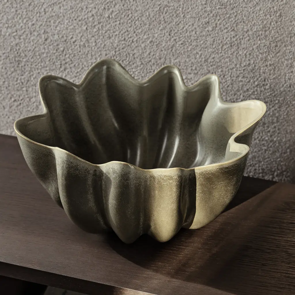 Create a dynamic dining centerpiece with the Nium Bowl from Ferm Living. Inspired by the soft, flowing lines of draped fabric, its graceful curves are accentuated by a reactive glaze that plays with light and shadow. Versatile in use, it can serve as a fruit bowl or a striking decorative piece. Highlights