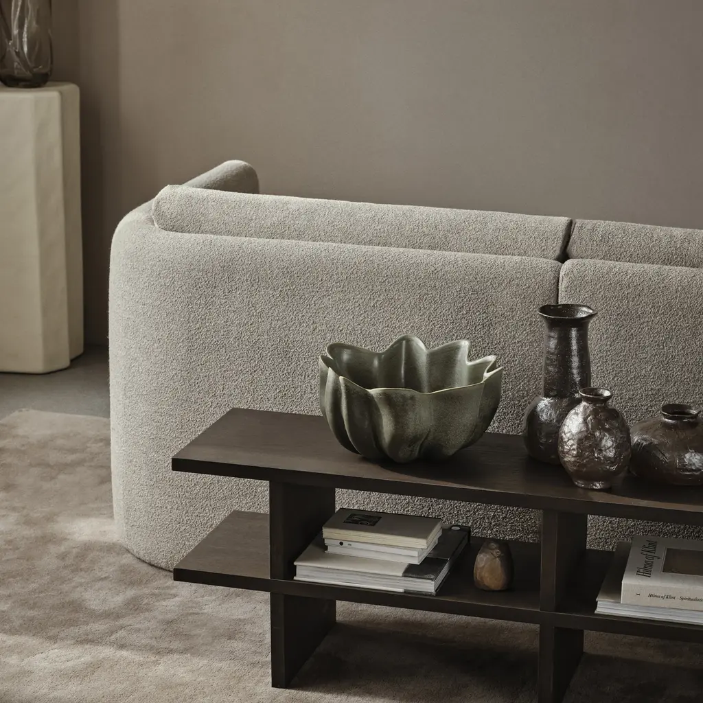 Create a dynamic dining centerpiece with the Nium Bowl from Ferm Living. Inspired by the soft, flowing lines of draped fabric, its graceful curves are accentuated by a reactive glaze that plays with light and shadow. Versatile in use, it can serve as a fruit bowl or a striking decorative piece. Highlights