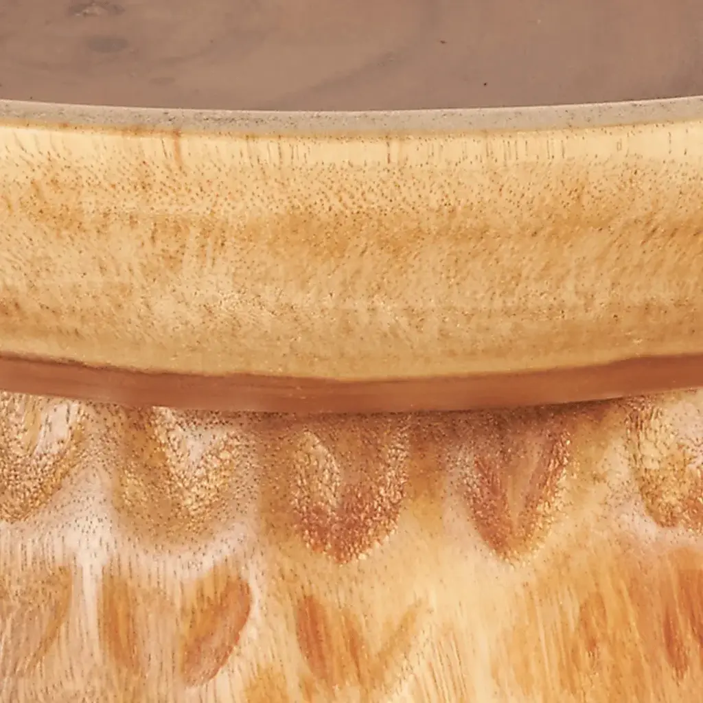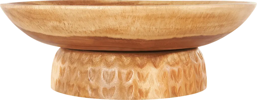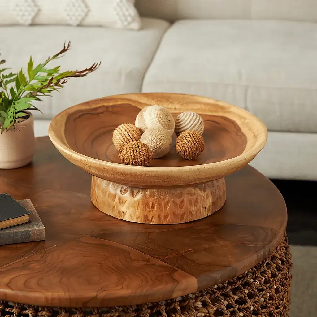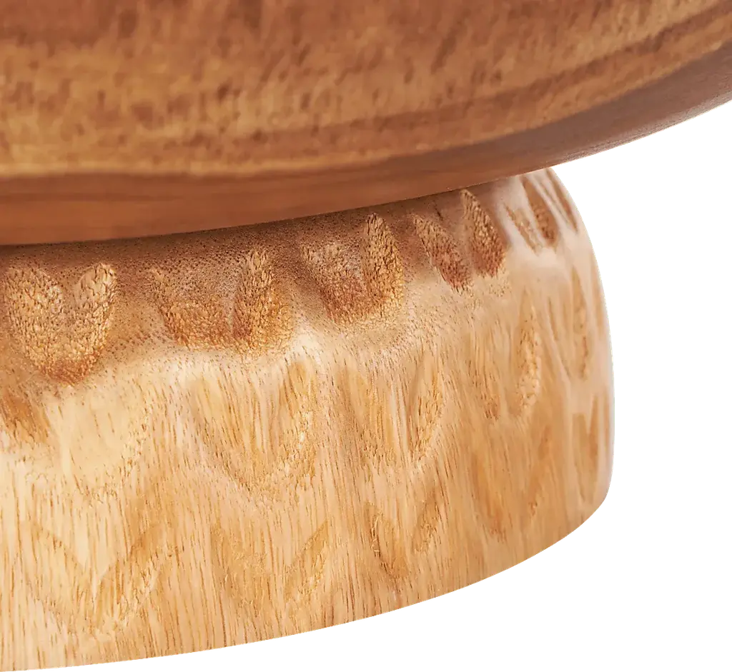 Introducing the Nolevu Bowl. Exuding timeless sophistication, this brown decorative bowl blends rich textures and warm hues for a classic touch of luxury. Handcrafted from high-quality mangur wood, it showcases the artisan's skill and the natural beauty of the material. The round bowl features a rich oiled brown finish and rests on an elevated base, adding elegance and refinement to any space. Customer assembly is required.