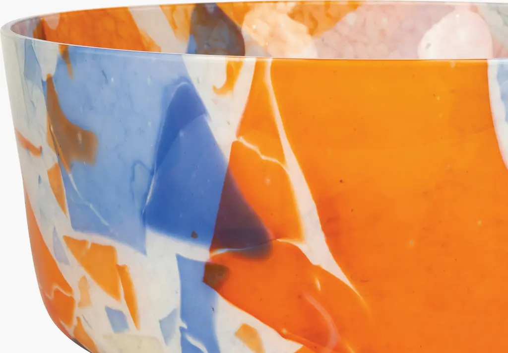 Based in Milan, Stories of Italy is a design studio that uses time-honored techniques to create beautifully crafted modern objects. Their Nougat Collection resulted from experiments reusing pieces of Murano blown glass, resulting in one-of-a-kind bowls, vases, and glasses that feature a mix of transparent colored shards against an opaque white background. Made in Italy.