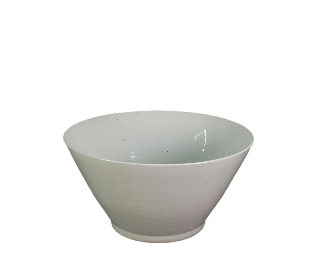 This large white cone shape bowl is handmade and each piece has its unique and natural variance. The bowl features a simple and elegant design with an off-white color that complements any decor style. Measuring 17 inches in width and depth and 9 inches in height, this porcelain bowl is perfect for displaying decorative objects or as a standalone piece. Item No.: PP2224 Dimension: Approx. 17.0"W, 17.0"D, 9.0"H Origin: China Colors: White Materials: Porcelain