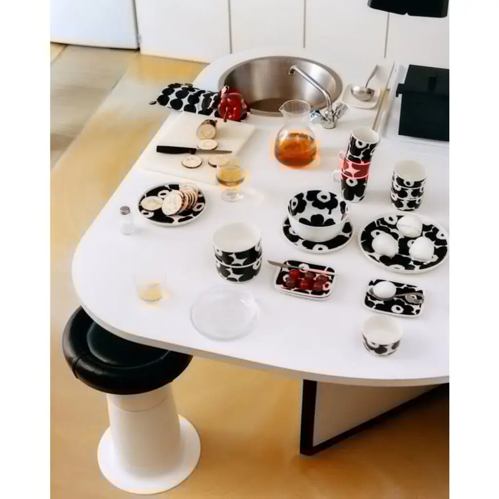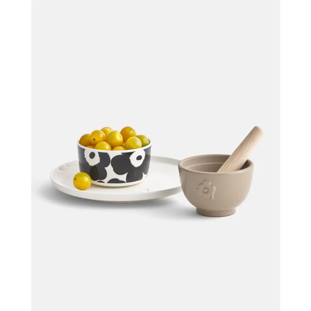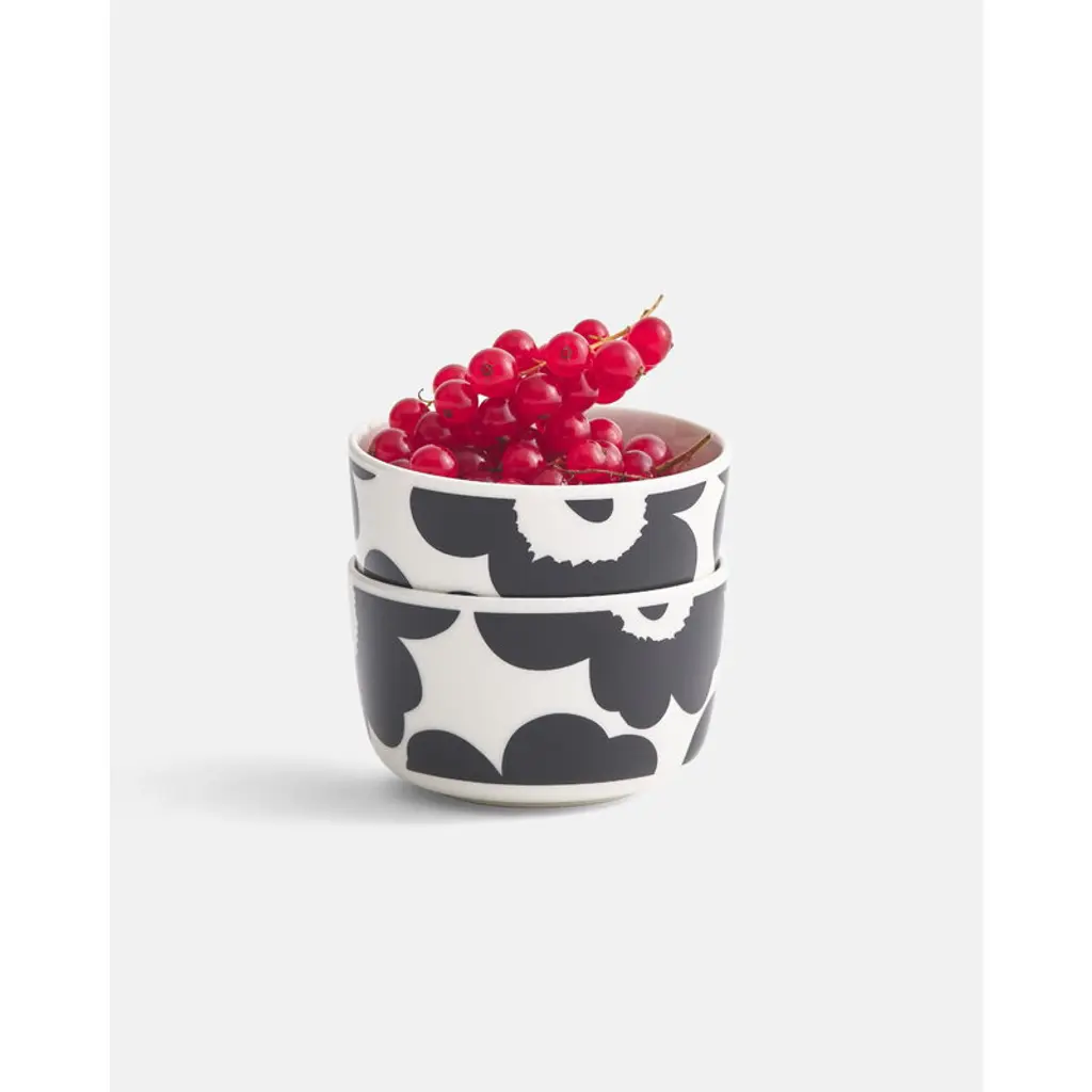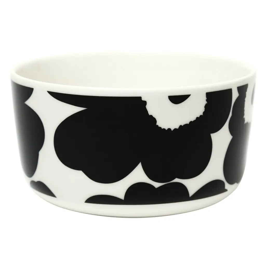 Marimekko’s Unikko bowl features Maija Isola’s iconic floral pattern in stylish shades of black and white. The ceramic bowl is part of Sami Ruotsalainen’s clean-lined Oiva tableware collection that suits both casual and festive settings. The Unikko pattern came about in 1964 after Armi Ratia, the founder of Marimekko, had announced in public that no floral fabrics are designed at Marimekko. Maija Isola did not accept rules or restrictions and designed in protest a complete collection of bold floral patterns: Unikko, a Finnish word that means poppy. Today, Unikko is one of Marimekko's best-known patterns and recognized around the world.