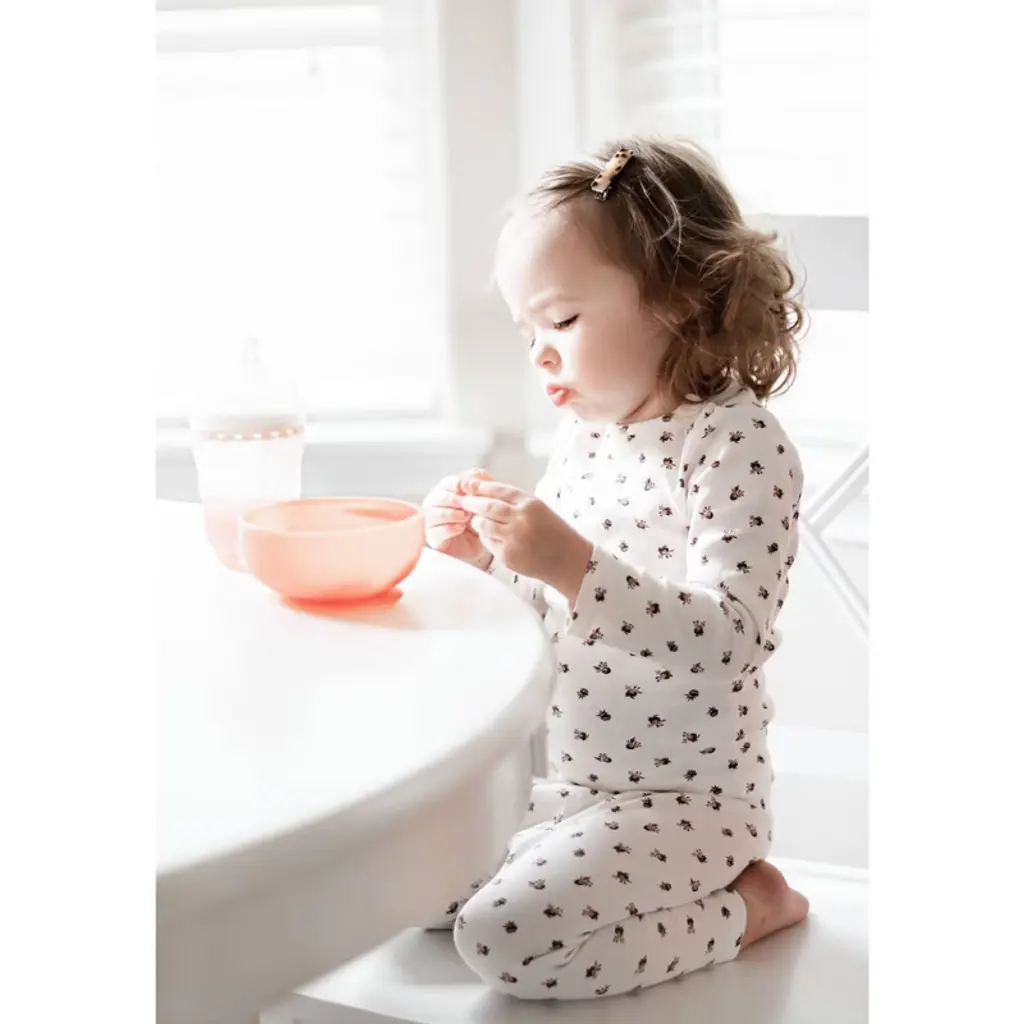 The Olababy 100% silicone suction bowl with lid is designed to be the perfect feeding bowl for toddlers to achieve feeding independence. Its strong suction base sticks to any flat surfaces such as highchair trays and tables to create a stress-free and no-mess mealtime. The release tab allows for a simple release of the bowl by adults. The spill proof silicone lid enables easy meal transfer and storage. Its smooth surface is bacteria resistant and very easy to clean.