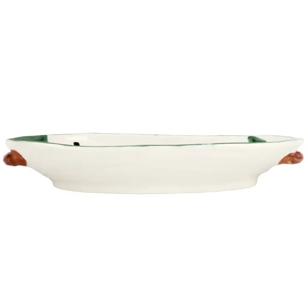 VIETRI’s signature holiday collection is created from maestro artisan Alessandro Taddei’s childhood memories of stories his mother used to read to him about Babbo Natale, Italy’s Santa Claus. Alessandro relays his favorite scenes from those stories through his whimsical designs on the Old St. Nick Shallow Oval Bowl. Since 1983, Vietri has specialized exclusively in Italian handcrafted ceramics, stainless and pewter flatware, mouth blown glassware, lamps, urns and planters. Families of artisans with 3 or 4 generations of history create these special pieces using centuries-old techniques. The subtle color from a paintbrush and the curving stroke of the artist's hand are never repeated in quite the same way, making each piece truly unique.