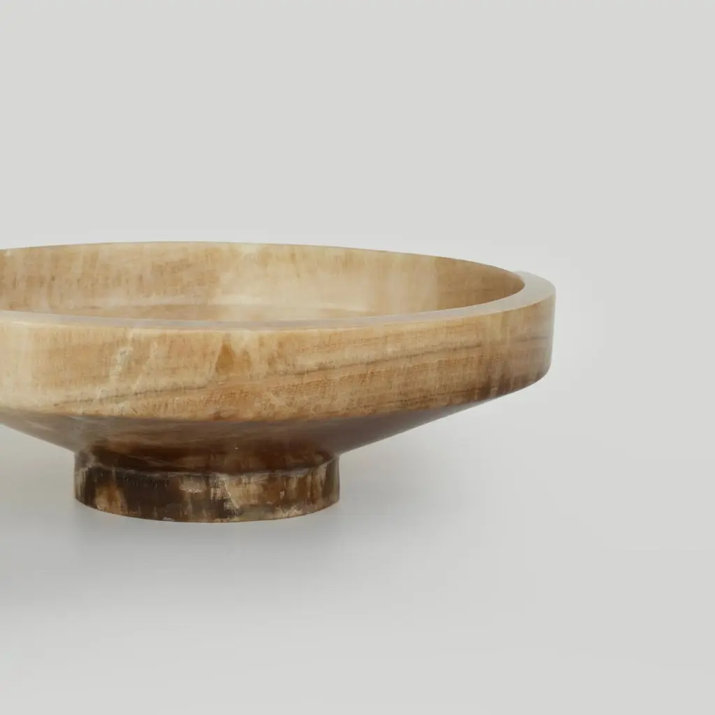 Introducing our exquisite Onyx Bowl, a fusion of elegance and functionality. Crafted from luxurious onyx stone, this stunning bowl is a testament to timeless beauty and sophistication. Whether displayed as a decorative accent on a coffee table or used as a chic fruit bowl in the kitchen, its rich hues and natural veining will effortlessly elevate your decor.Each bowl is meticulously handcrafted, ensuring that no two pieces are exactly alike, adding a unique charm to every setting.