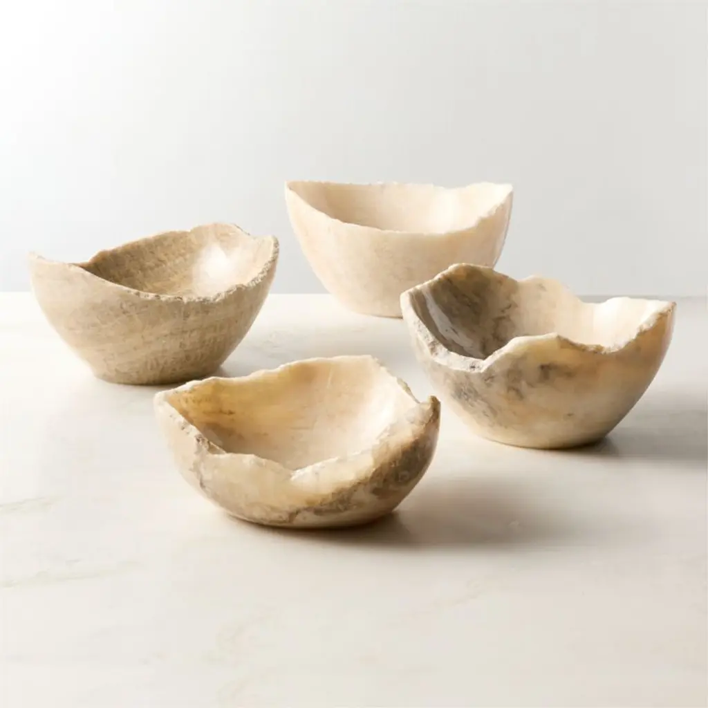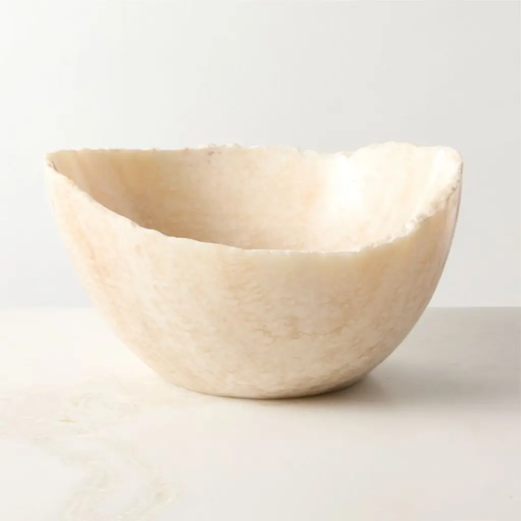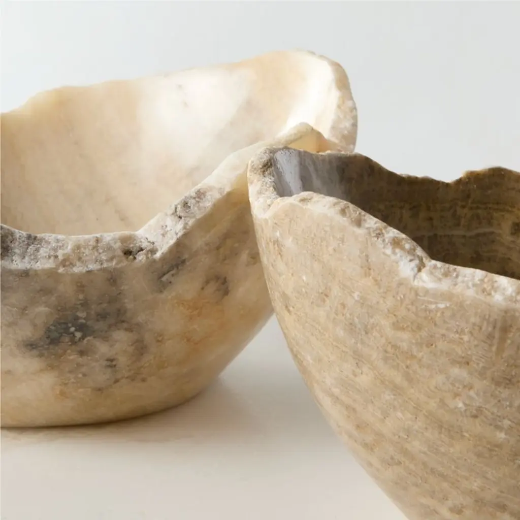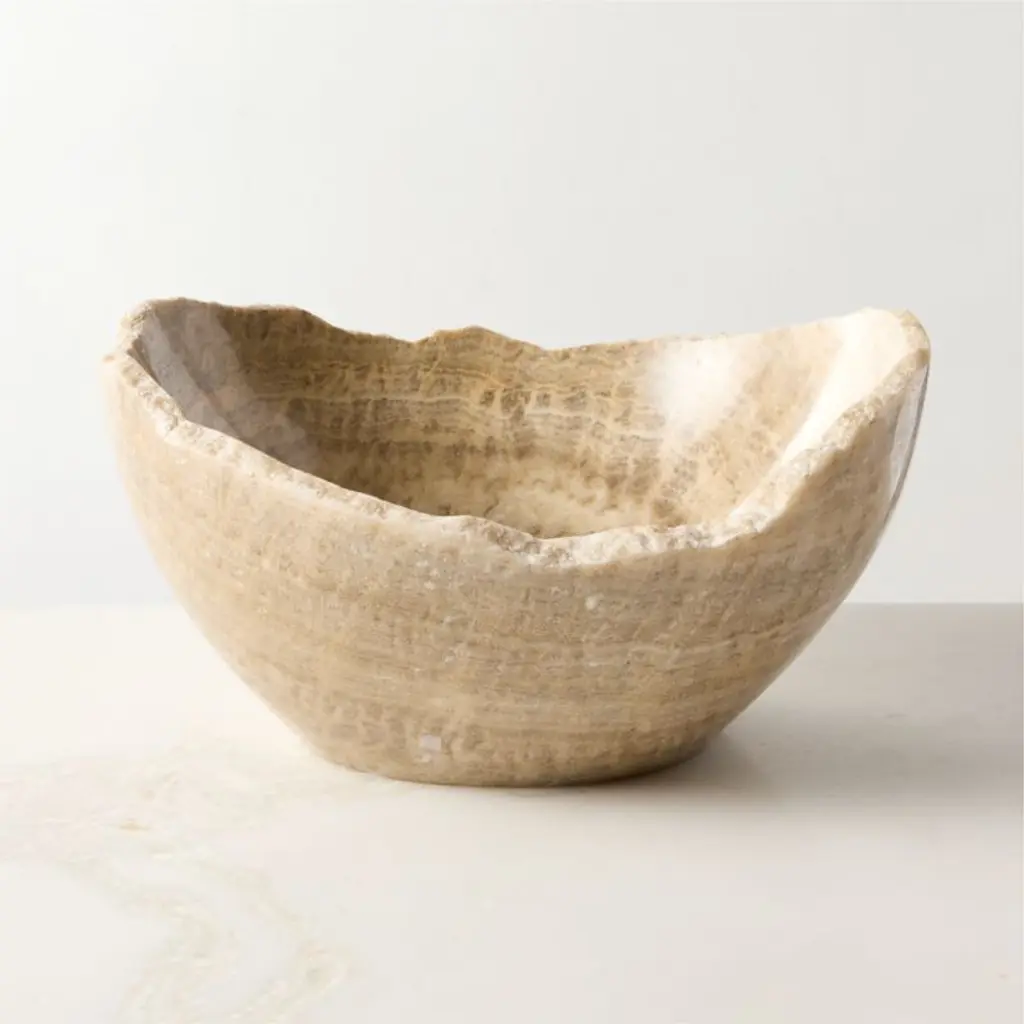 Hand-shaped by artisans in Bali, natural onyx transforms into a stunning piece of decor. Each bowl will have different tones, veining and raw edges making each one a one-of-a-kind. CB2 exclusive.