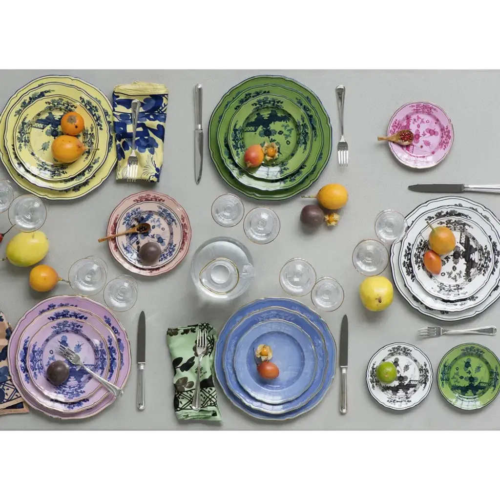 A lush and colorful garden of exotic flowers, an exuberant and uncommon party on the lawn. With the Ginori 1735 Oriente Italiano collection, we wanted to dare, and in daring we established a style that combines two elements of the artistic tradition of Italy - the elegance of the lines from the Antico Doccia Ginori collection and the delicate charm of the Garofano, a floral motif typical of Faenza ceramics and inspired by a fantastical oriental garden - in the explosiveness of the colors that animate the porcelain plates, the cups and all of the other items in the Ginori Oriente Italiano collection.