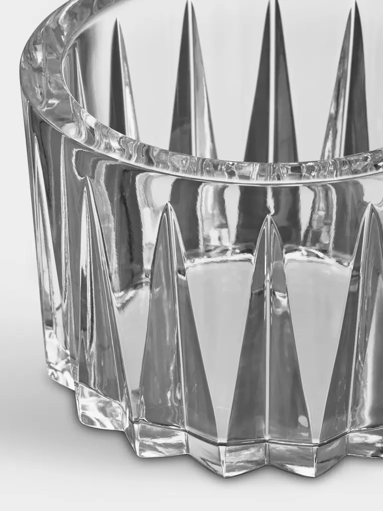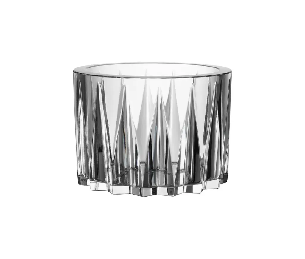 Sarek from Orrefors has deep-cut facets inspired by the motif on wooden baskets made of plaited birch bark, which has a symbolic connection to Swedish nature. The thick crystal bowl is a design object that also functions as a serving dish. Designed by Lena Bergström.
