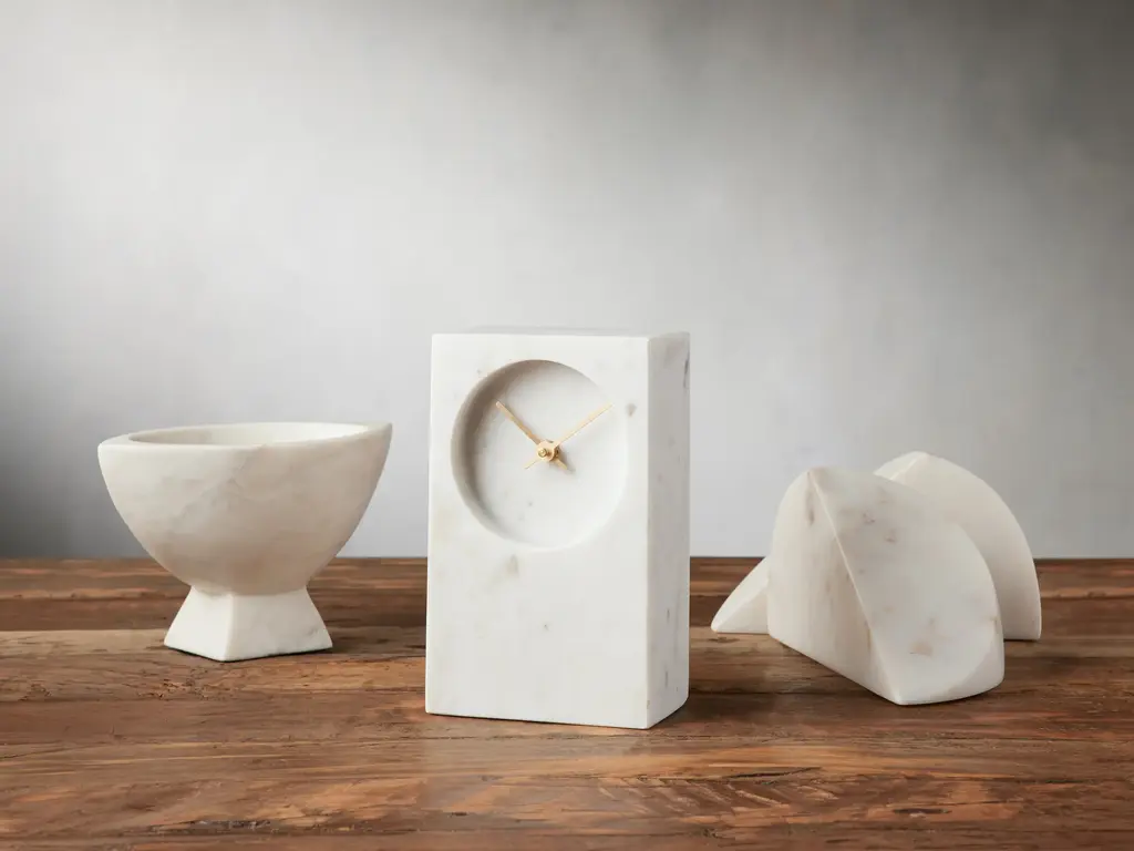 Our Oslo Collection is crafted from natural marble that has been hand-carved and finished by artisan partners in India to accentuate every unique vein, color, and marking to elevate your décor. Hand-carved from marble by artisan partners in India. Food safe for nuts, crackers, or other dry goods only. Natural marble will vary in color and pattern, making every piece unique.
