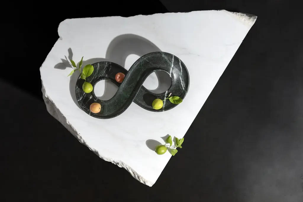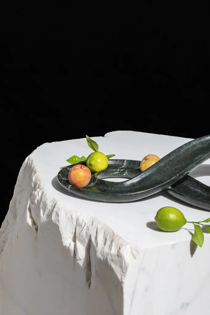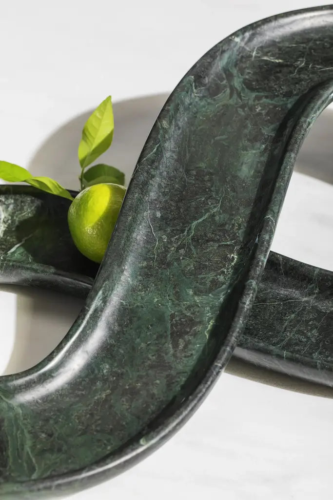 OTO is a fruit bowl with an unusual and original shape that aims to give a strong expressive value to a material such as stone. It normally evokes a sensation of static and immutability, which instead become movement and plasticity through a sinuous shape that pushes the material beyond its limits, bringing out the executive skills of manufacturing. There are many references that everyone can associate with this object: the number 8, the symbol of infinity but also a playground. materials: Verias Green Numbered