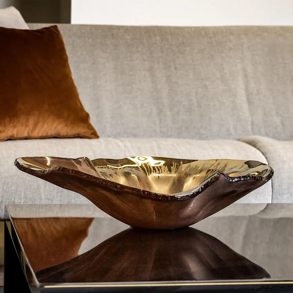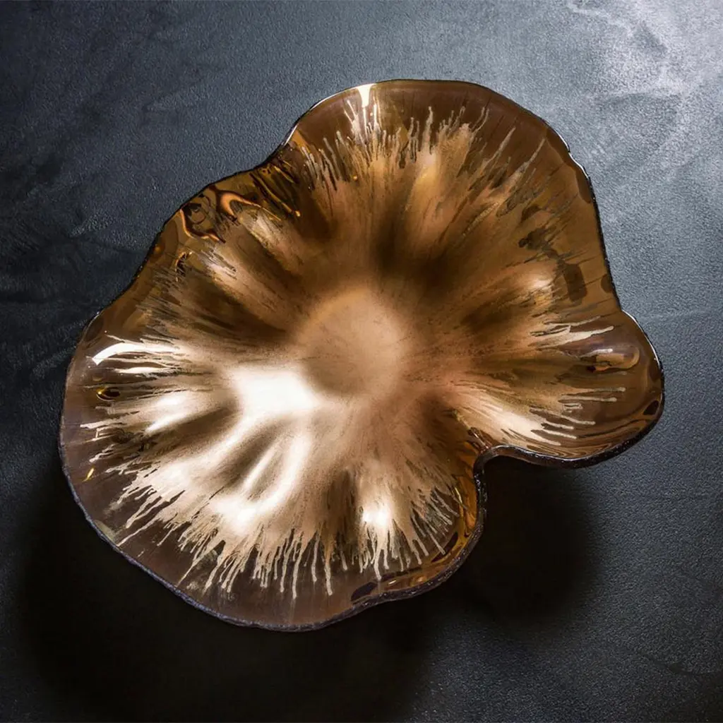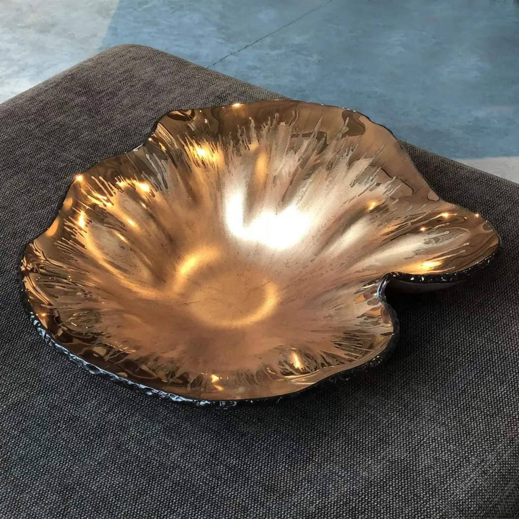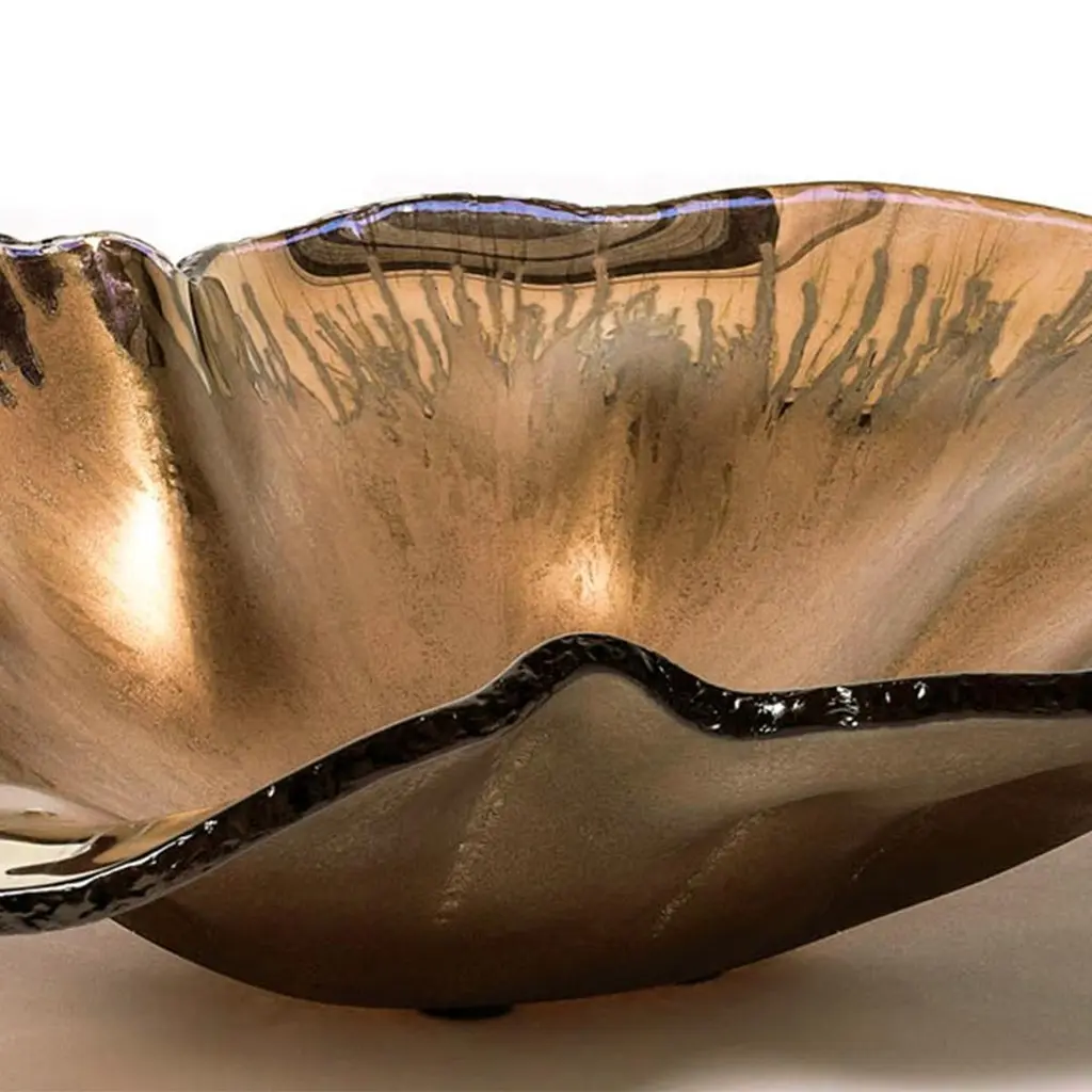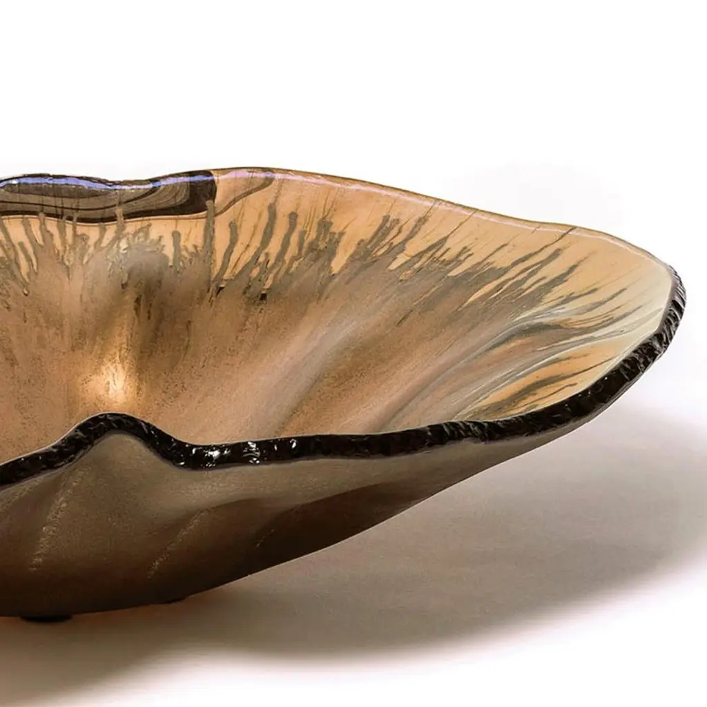 Bowl Outbreak Bronzed glass all in blown glass with bronze casted inside the bowl, glass with local oxides and bronze components to create unique effects. Hand-crafted piece, each piece is unique.