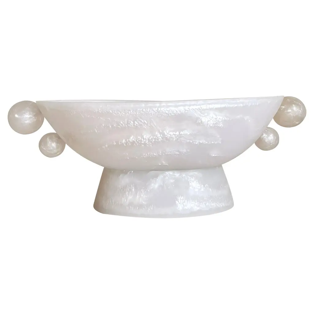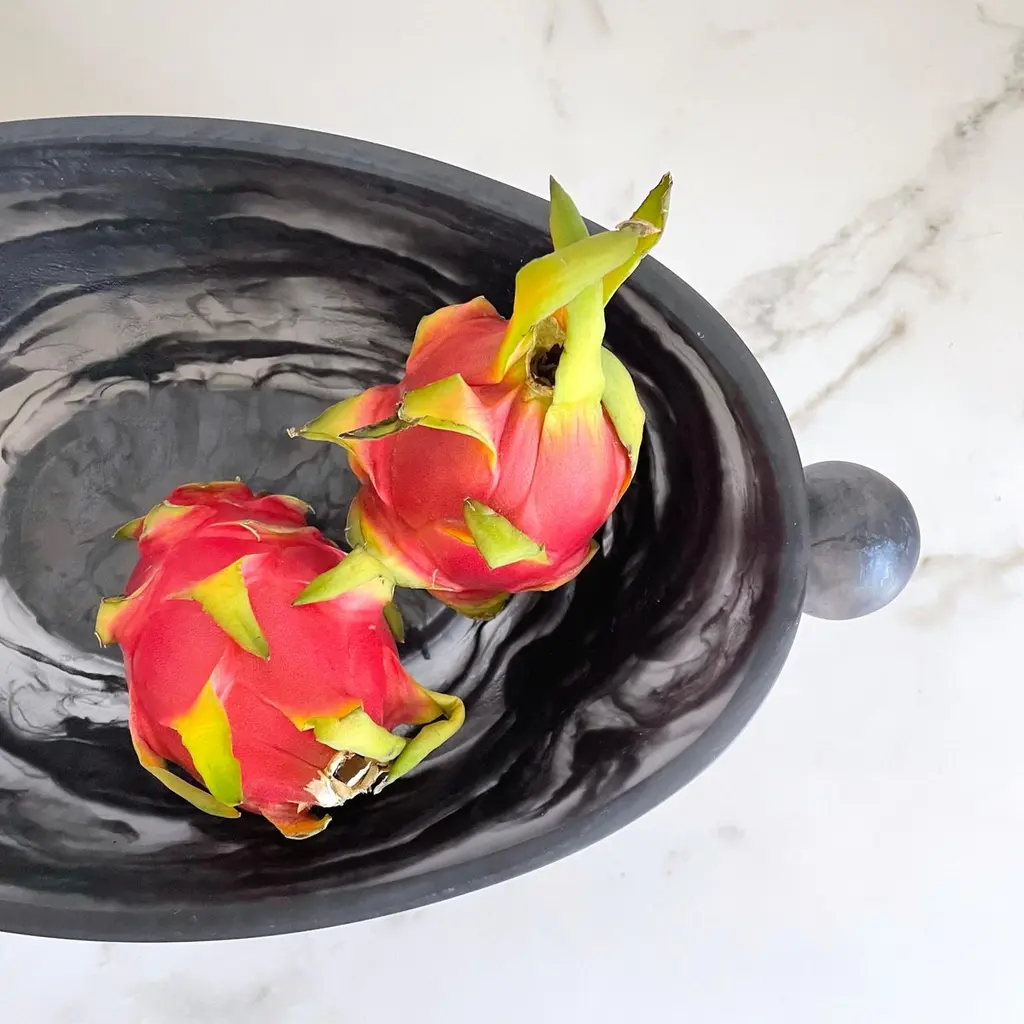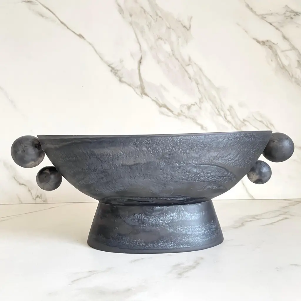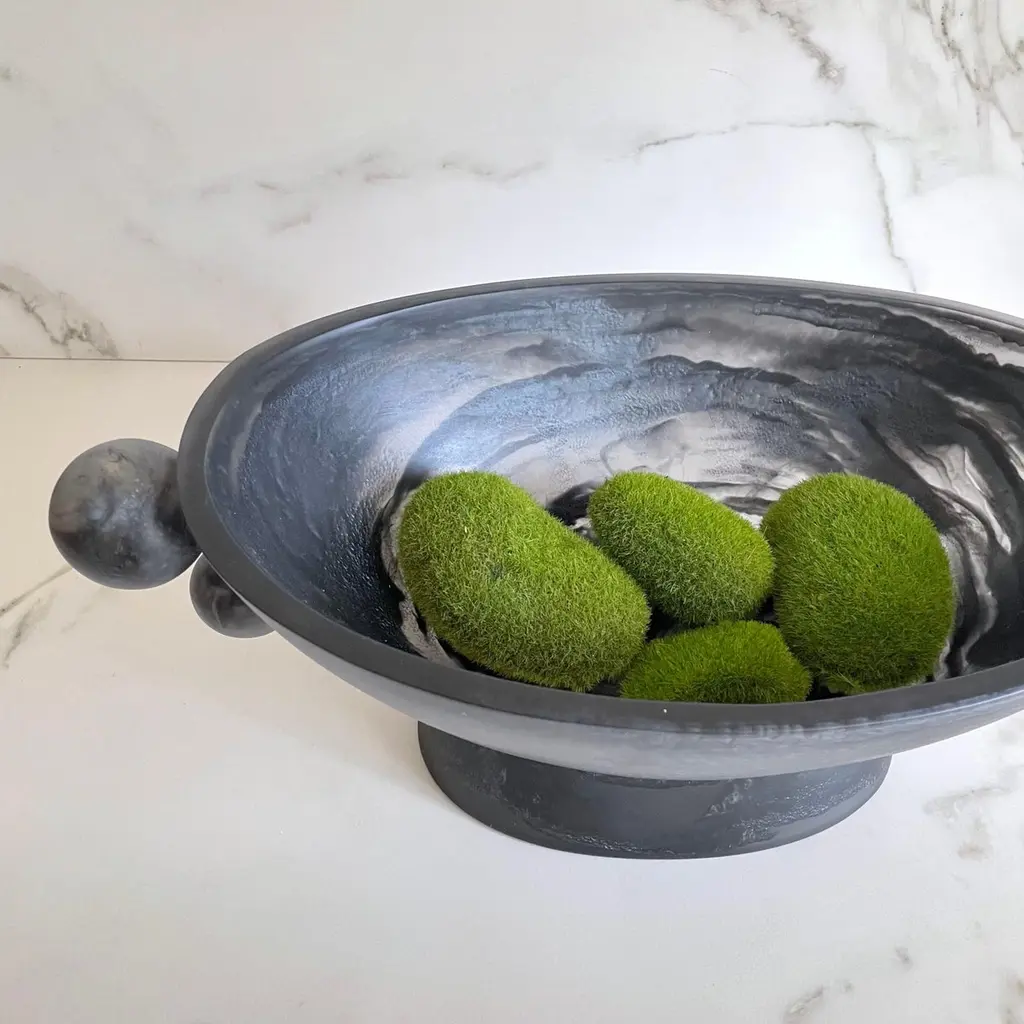 Our oval pedestal bowl is great for holding fruit, plants, decorative objects, faux succulents and specially everyone's attention. You can have it on display on a kitchen counter or use it as a centerpiece on a dining table, the possibilities are endless.Color: Smoke colored resin with marbled texture in black pearl. The piece has a beautiful pearlescent color.Designed by Paola Valle and manufactured in Mexico City by extraordinary artisans. Our goal is to work hand by hand to create outstanding pieces that will represent our passion.Please avoid placing your resin pieces in direct sunlight to avoid discoloration. All resin items are strong and durable but should be treated with care as they can break if dropped or knocked against a hard surface. Colors may vary slightly to the item shown in previous photos, as everything is handmade.IMPORTANT:Please do not handle or carry by spheres they are purely decorative, and do not support the weight of the pedestal.
